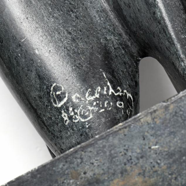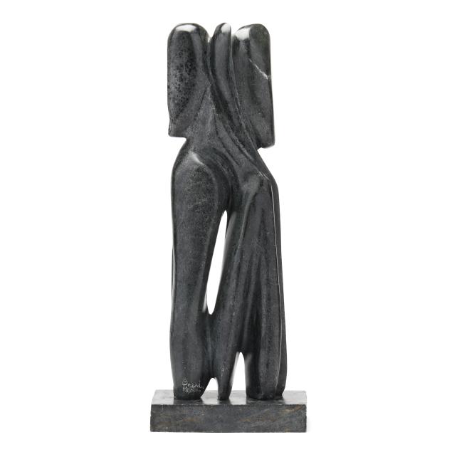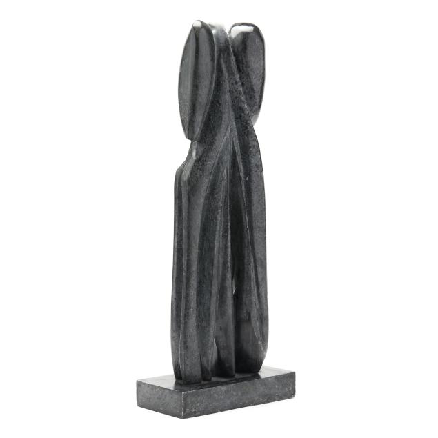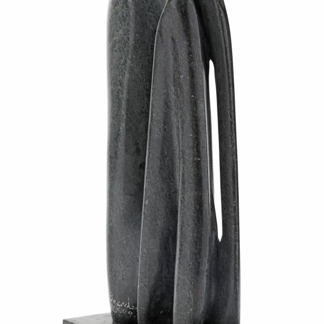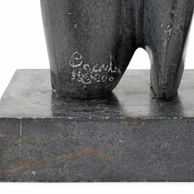 1988, carved and polished mottled gray stone in abstract figural form, signed "Breeden / 88 [copyright symbol] 2099."