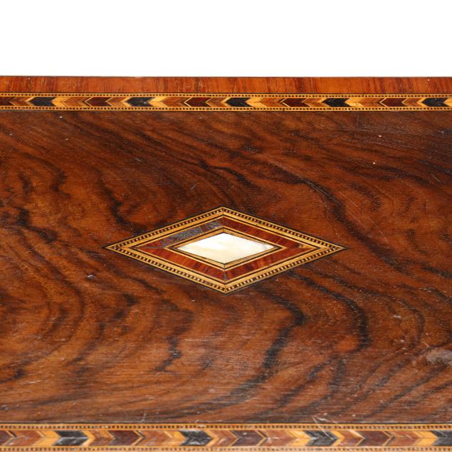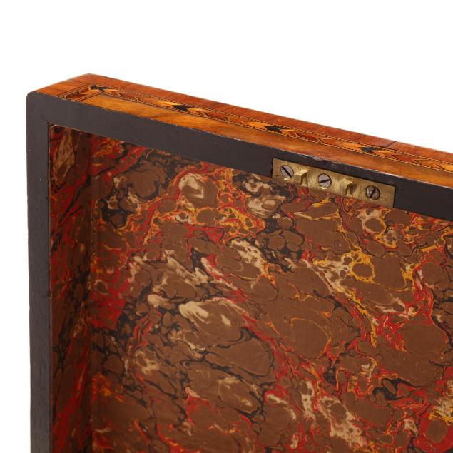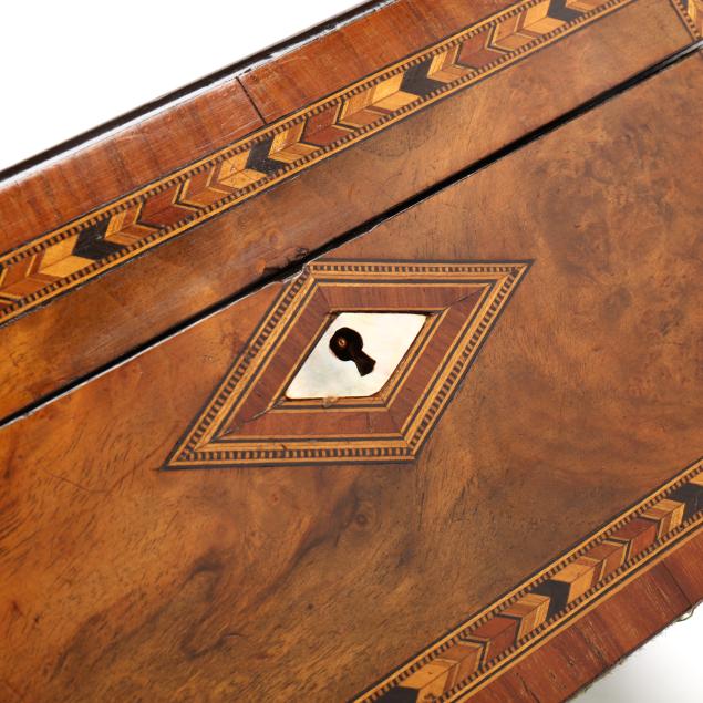 From the Collection of Josephine Chapman Borthwick, Pinehurst, North Carolina Overall good condition; some minor small inlay losses; tea compartments with lining losses.