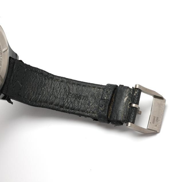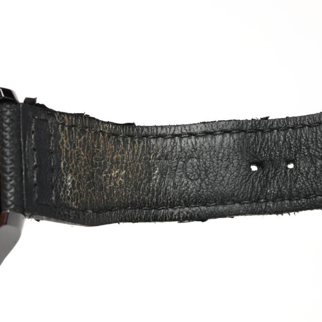 Heavy wear to leather strap; good estate condition; running at time of examination. Please see Terms and Conditions of Sale: Clocks and Watches.
