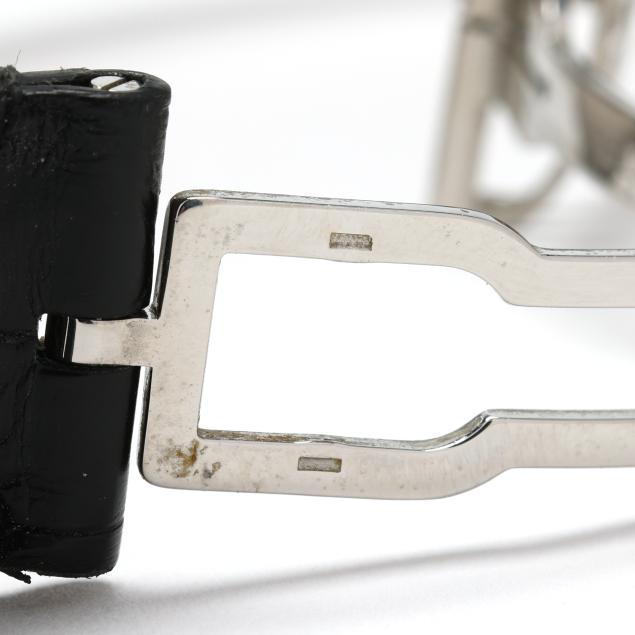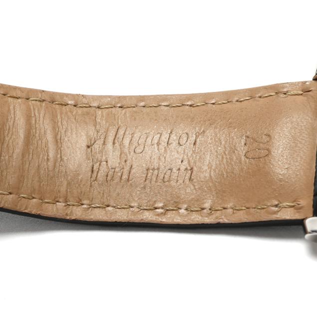 Signs of wear to leather strap; minor scratching to case; good estate condition; running at time of examination. Please see Terms and Conditions of Sale: Clocks and Watches.