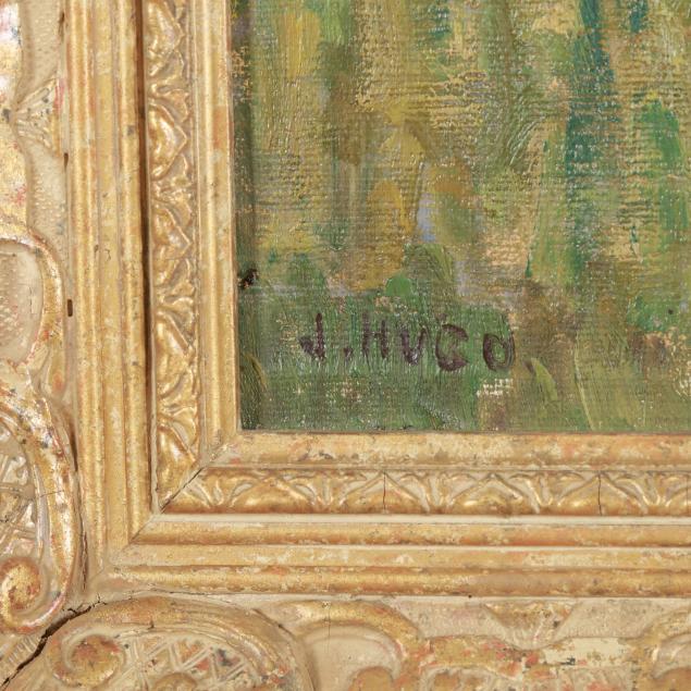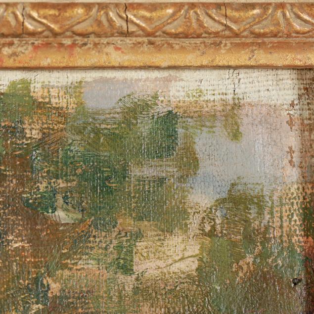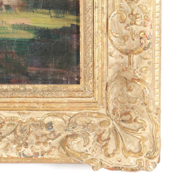 Oil on canvas, signed at lower left, presented in a later French Régence style gilt frame.