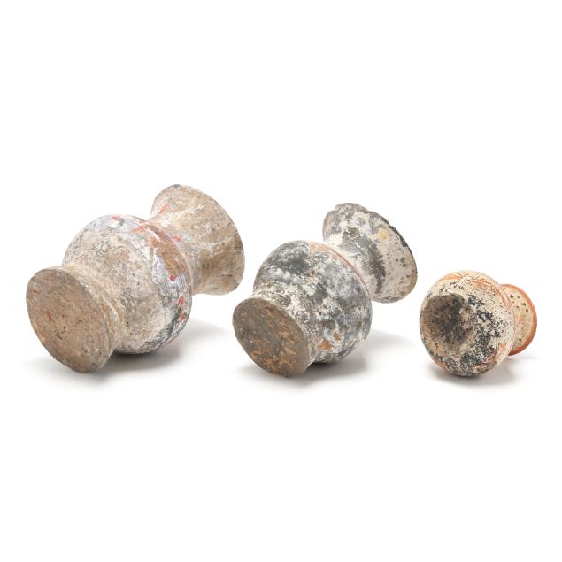 From the Estate of the late Susan C. Frankenberg, Hillsborough, North Carolina All with some pigment loss; the smallest with nicks to foot; medium sized vessels with chips to rim and nicks to foot; the largest with nicks to foot and rim and some cracking to rim.