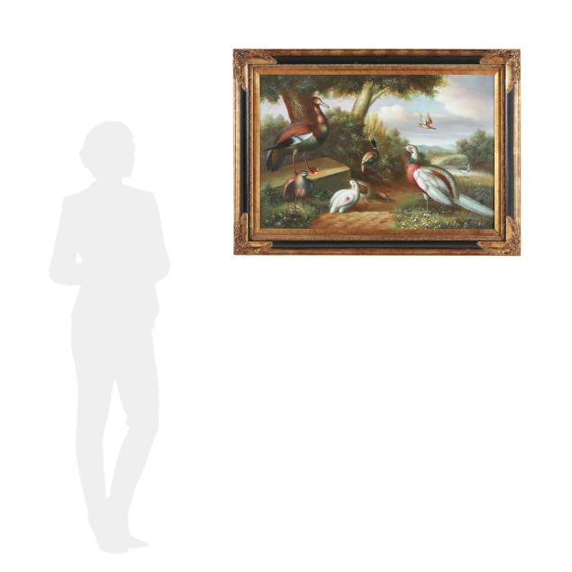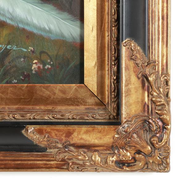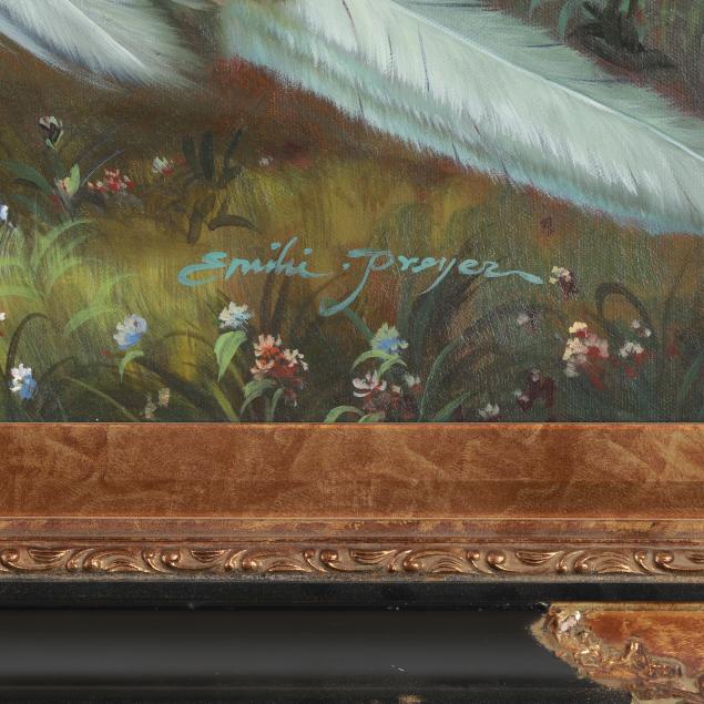 Oil on canvas, late 20th century, painted in the 17th century Dutch School style, signed "Emilie Preyer" at lower right, framed.