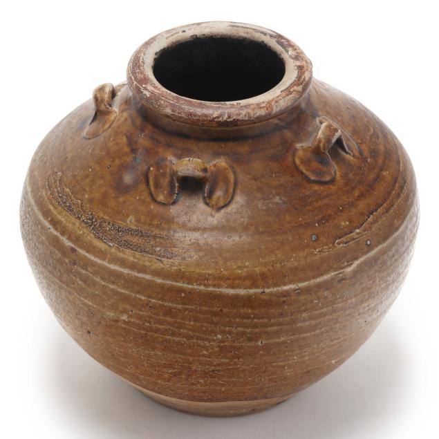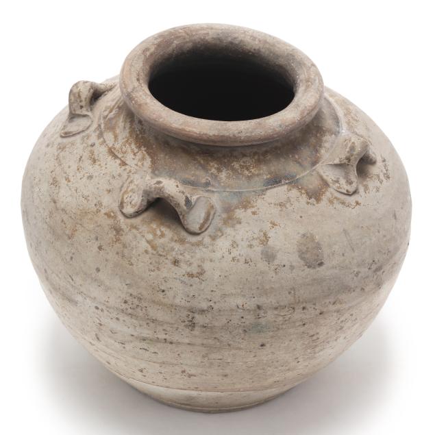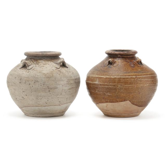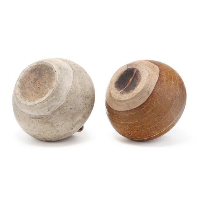 From the Estate of the late Susan C. Frankenberg, Hillsborough, North Carolina The gray glazed jug with nicks to base; both with glaze and firing anomalies as made.