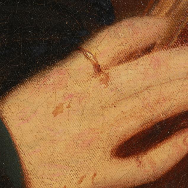 Oil on canvas (lined), unsigned, presented in an ornate period giltwood frame.