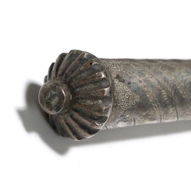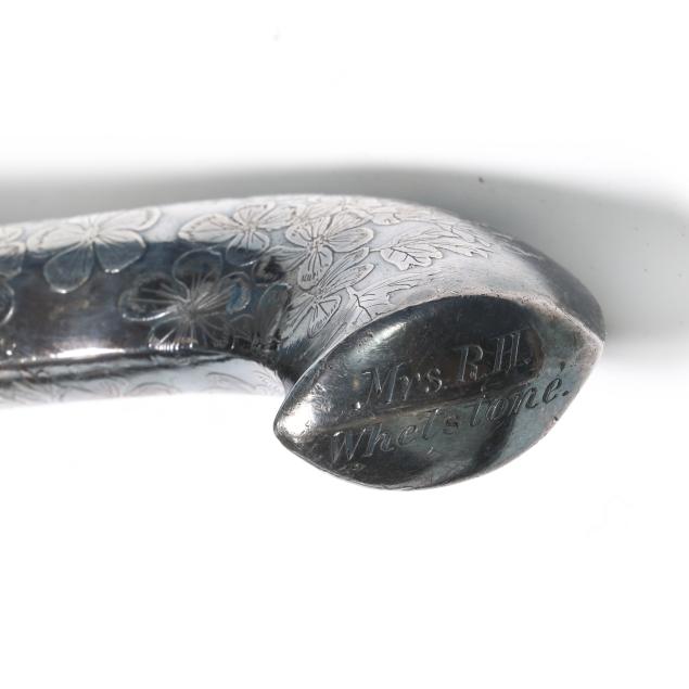 From the Estate of the late Susan C. Frankenberg, Hillsborough, North Carolina All pieces with handling wear, surface marks, and scratches to wooden elements; areas of silver losses, rubbing and denting to mounts.