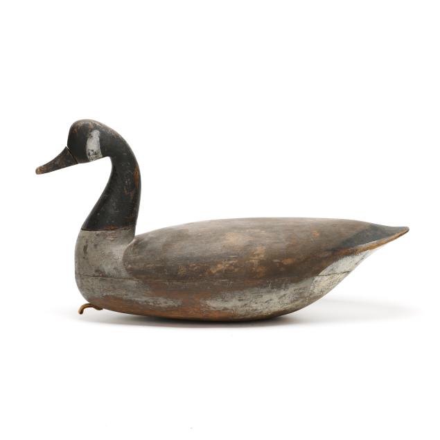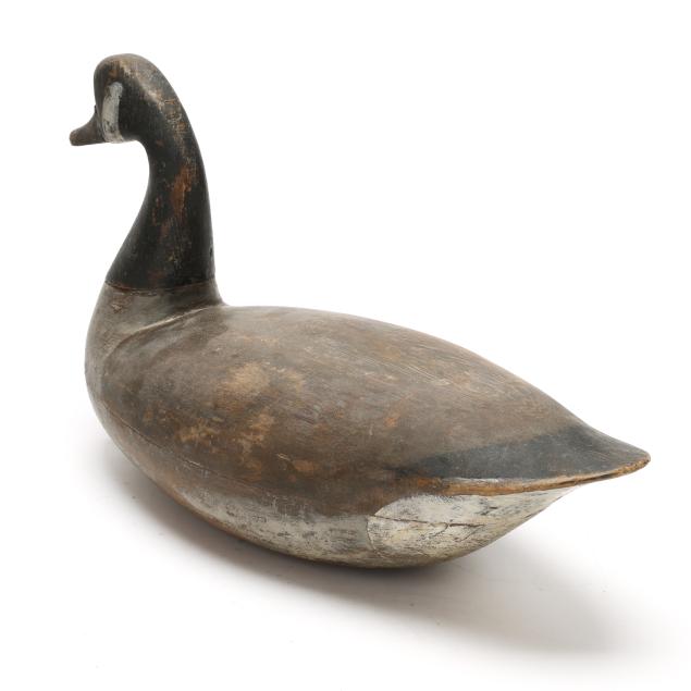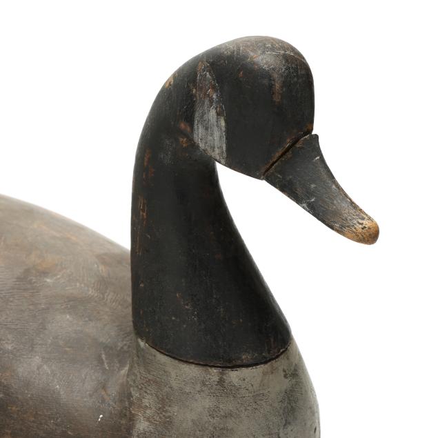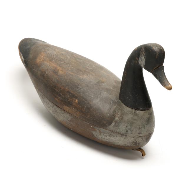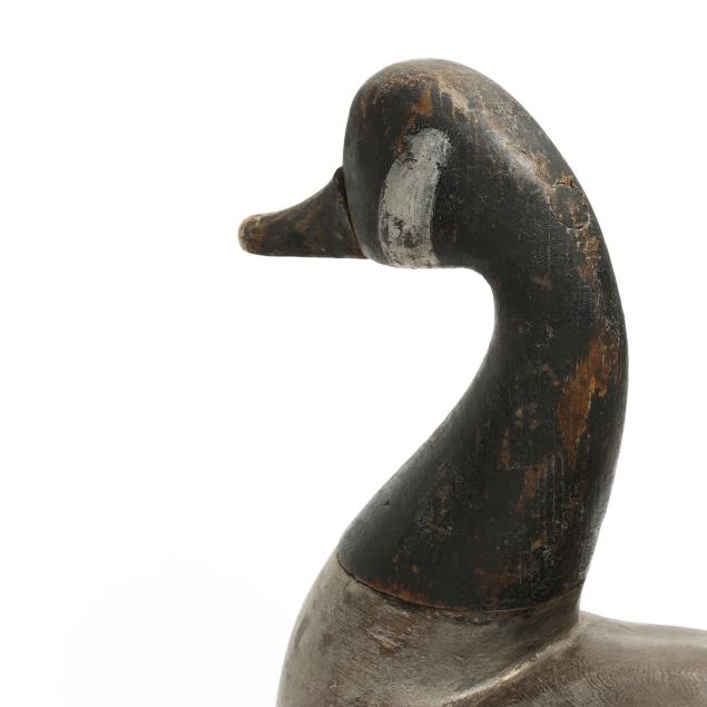 A hollow carved goose with dramatically raised neck shelf and inserted hard wood bill which is splined through the back of the head. Birch is perhaps the finest sculptural decoy maker from Virginia.