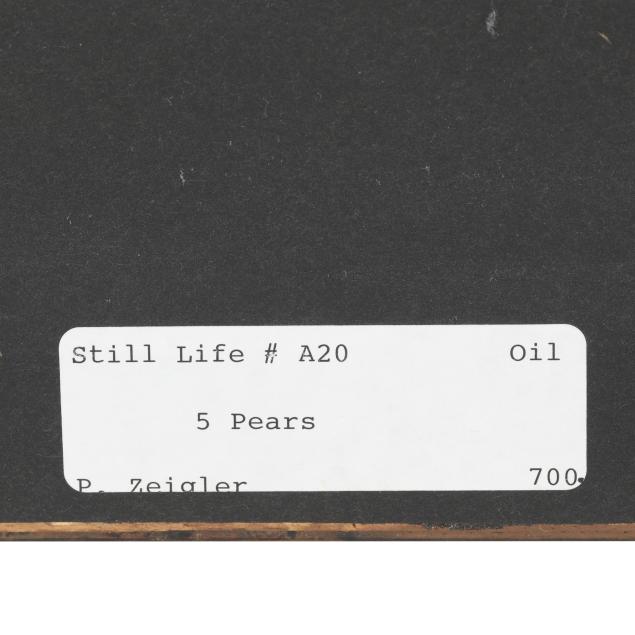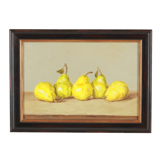 5 Pears, signed at lower center (Frame dimensions 12 1/4 x 16 1/2 in.).