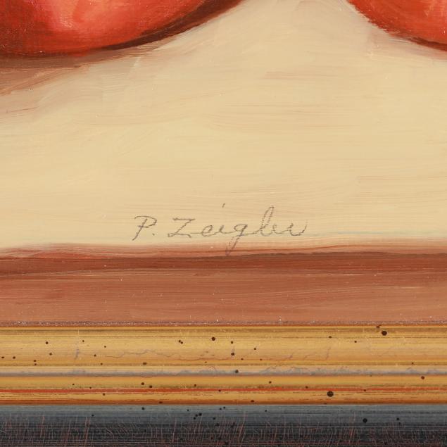 Patti Zeigler, a Parsons School of Design graduate, is a Vermont-based still life painter known for her colorful, whimsical arrangements of everyday objects. Blending traditional elements with unexpected touches, she layers vibrant color on smooth panels to create rich, radiant surfaces. Her work is represented in galleries throughout the Northeast.