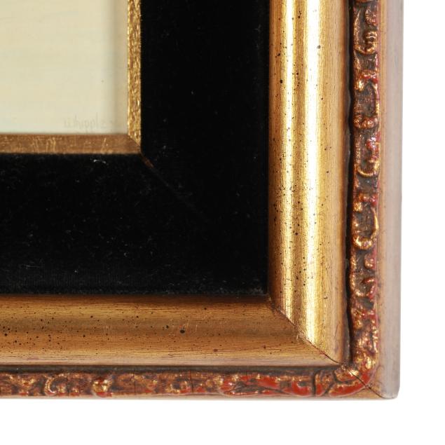 Oil on board, signed at lower right, presented in a period frame with velvet liner.