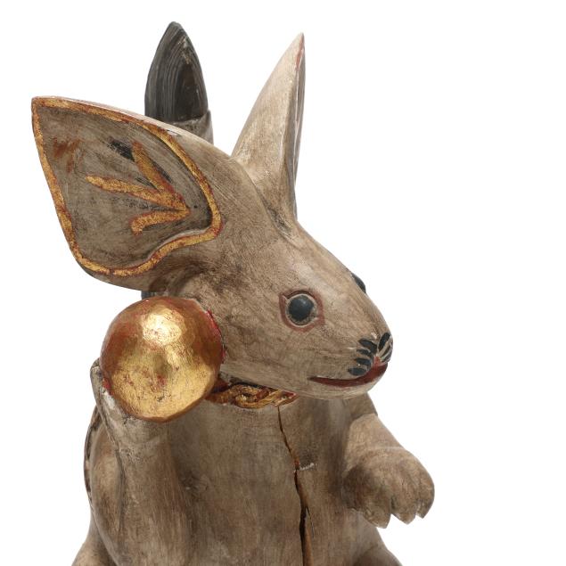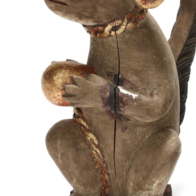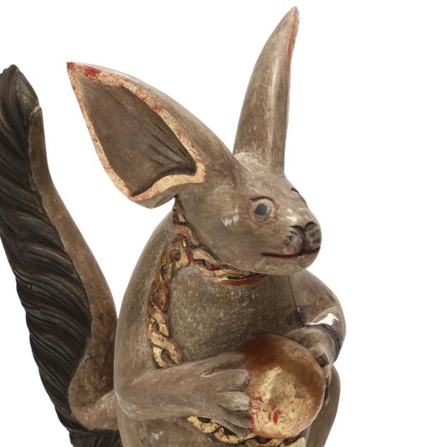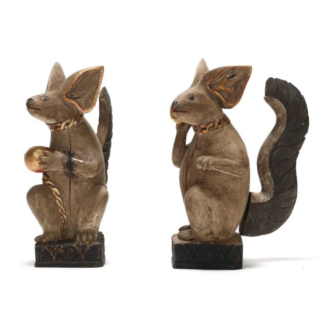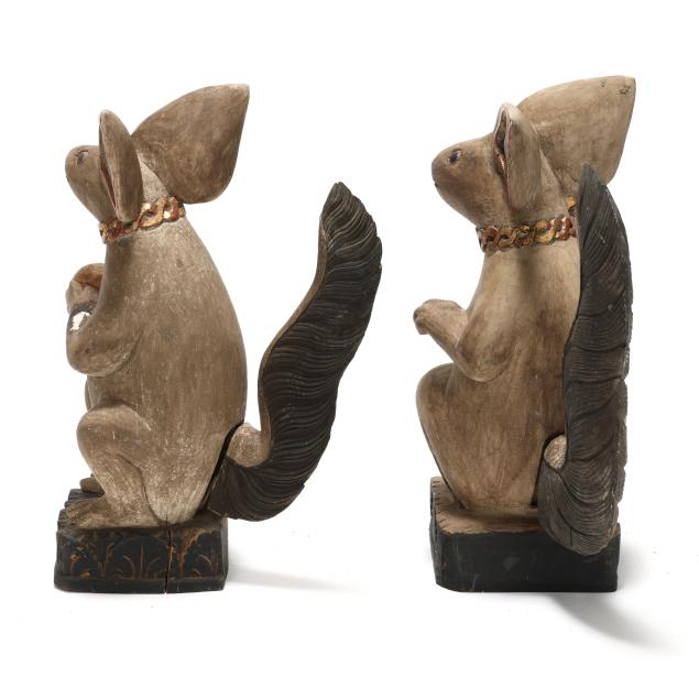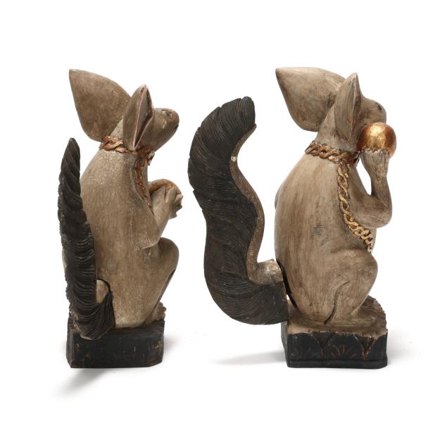 Two Fanciful Southeast Asian Carved and Painted Wooden Squirrels