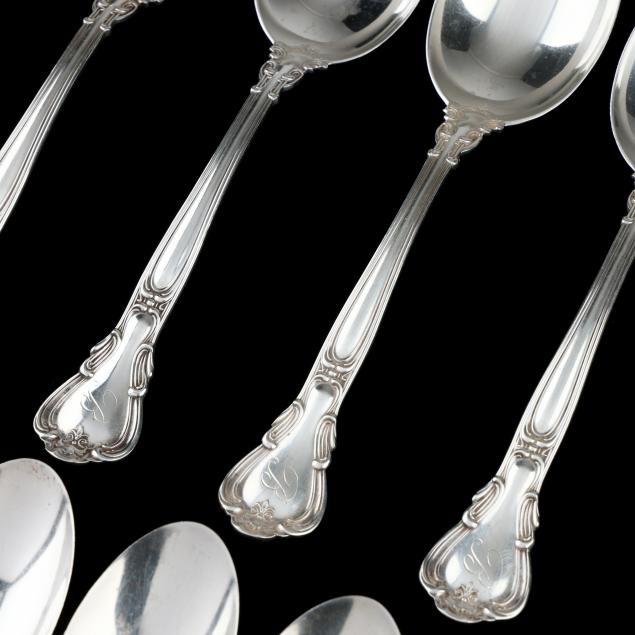 (20) to include: (8) tablespoons and (12) dessert spoons, with various "B" monograms.