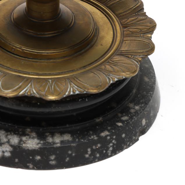 From the Estate of the late Susan C. Frankenberg, Hillsborough, North Carolina Spotting to the metal and slate; some light oxidation and surface staining; slate with some scattered edge chipping.