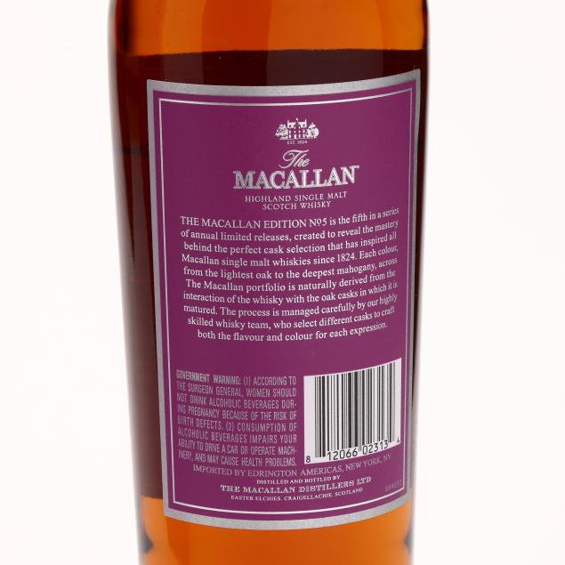 NV, The Macallan Edition No. 5 Highland Single Malt Scotch Whisky, Scotland, 48.5%, limited edition, into neck, sealed, ocb (1 750 ml)