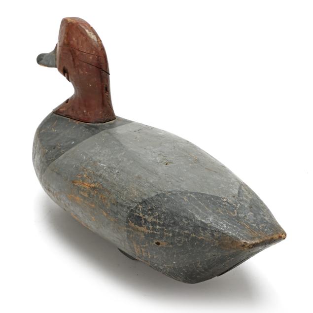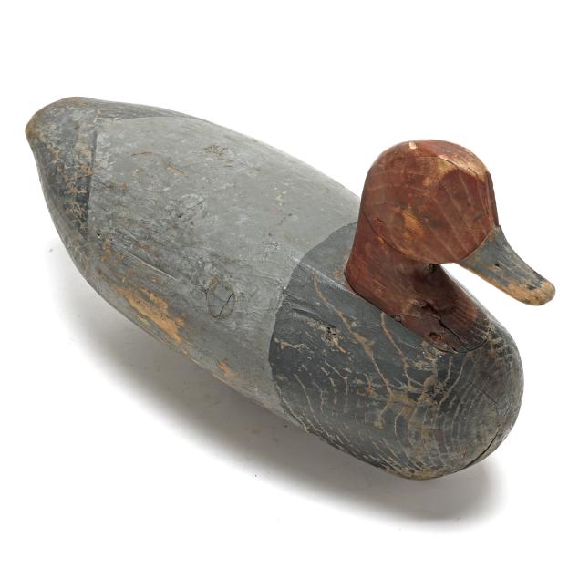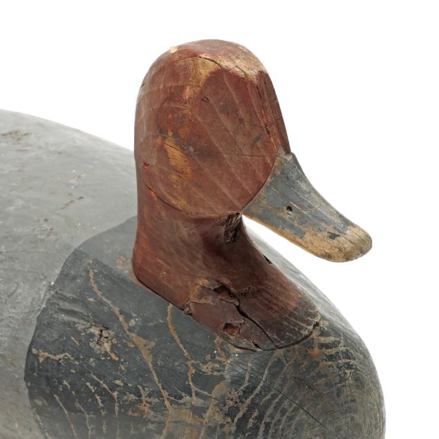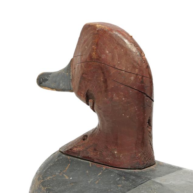 Original paint with light gunning wear, tight age checks in the head, natural flaw to wood on the left side of the head.