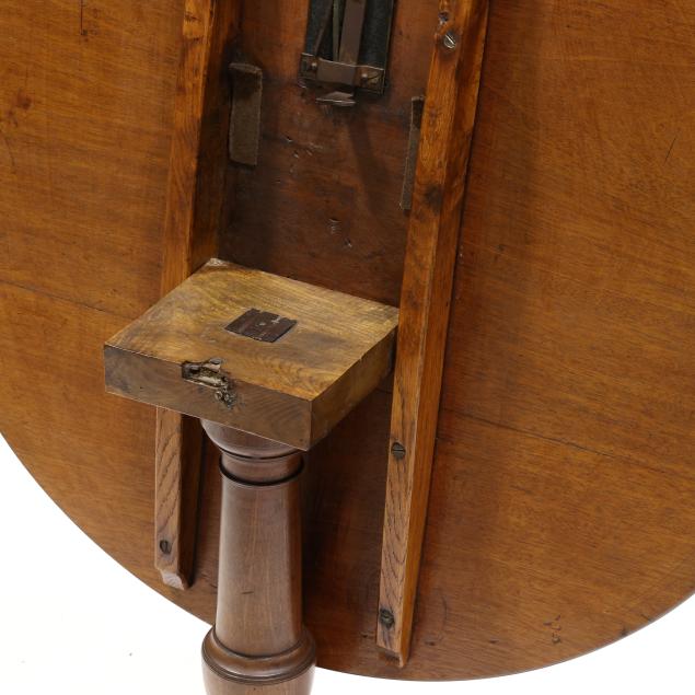 From the Estate of Dr. Charles & Shirley Herring, Kinston, North Carolina Top with sun fading and dark staining; cut and repair to lower 1/3 of top; top reset; old marring to legs from use.