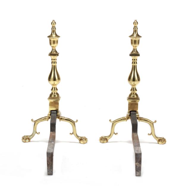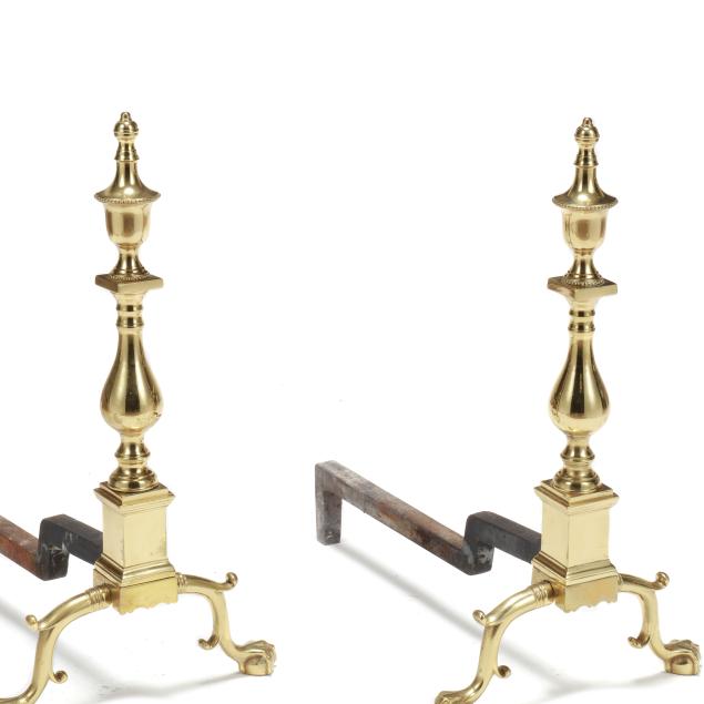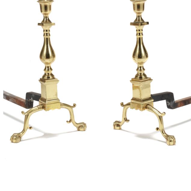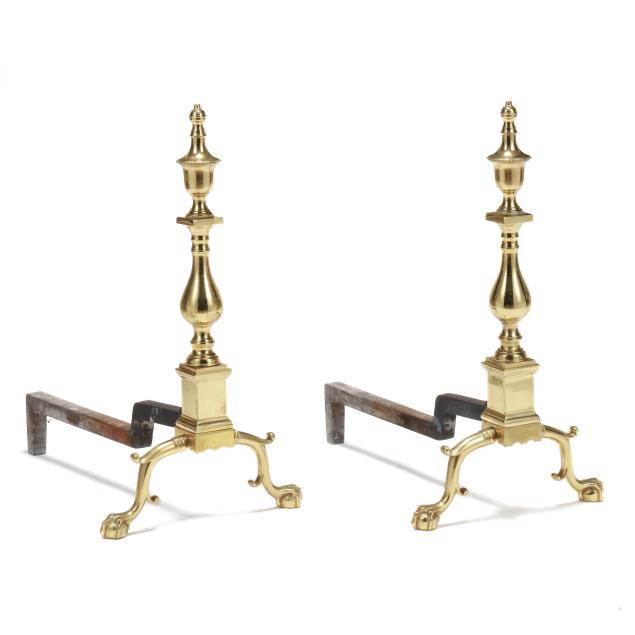 Harvin for Colonial Williamsburg, Pair of Chippendale Style Brass Andirons