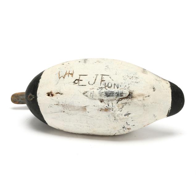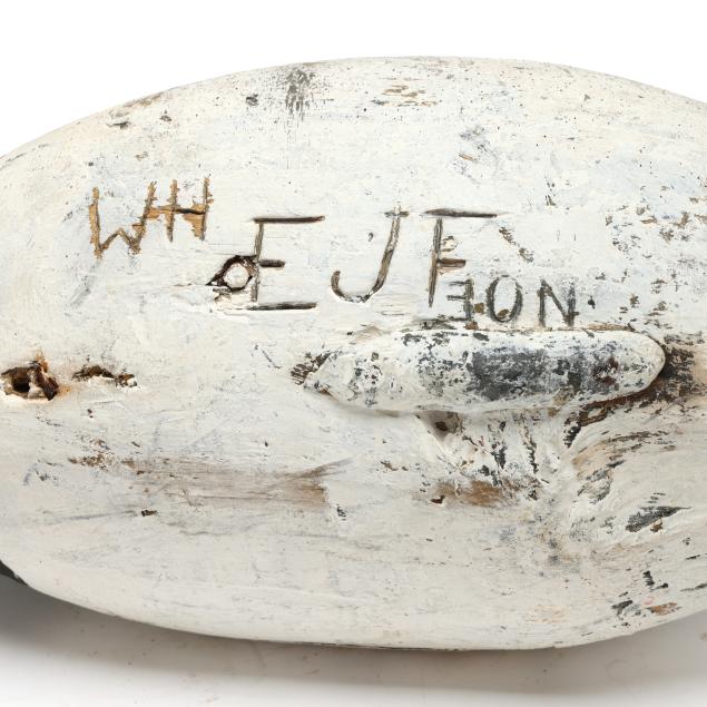 Branded NOE from the important NOE rig from Portsmouth Island, HM for Henry Murphy from Davis and EJF for Elijah James "Hot" Fulcher. Many Holly decoys were hunted at famed Core Sound gunning clubs.