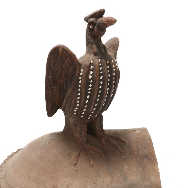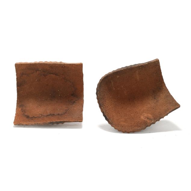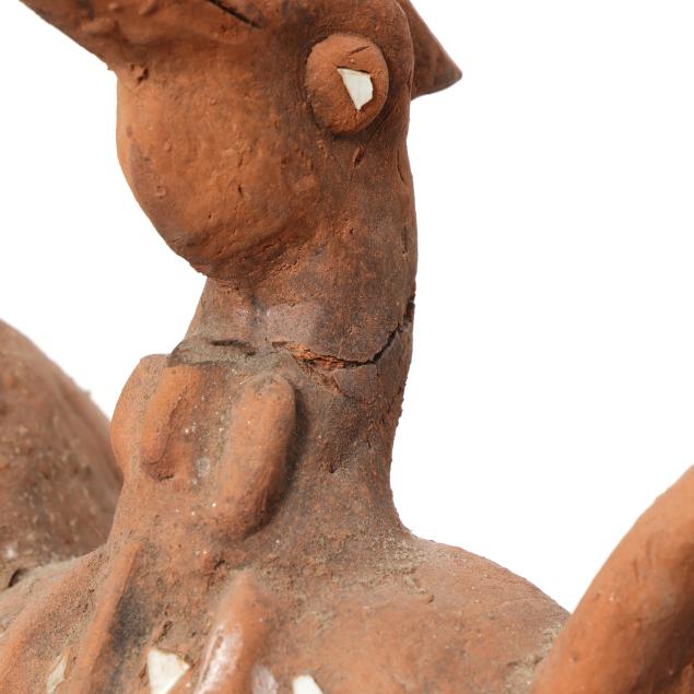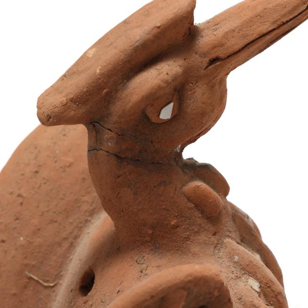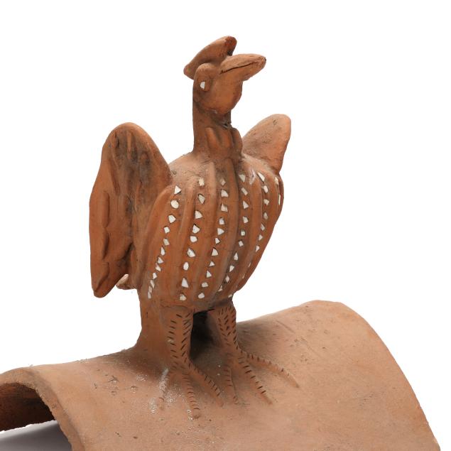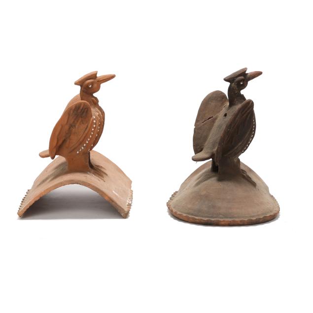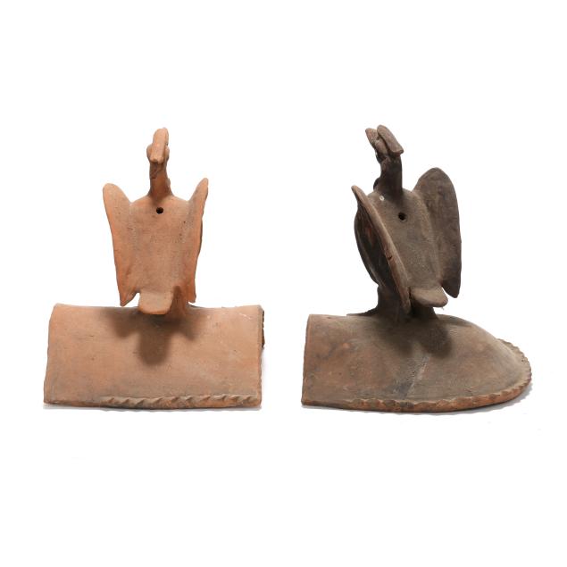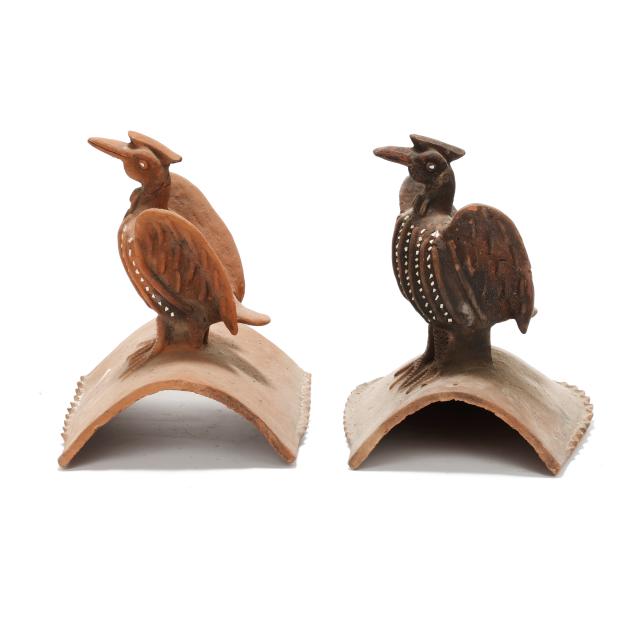 Two Large Terracotta Roof Tiles in the Form of Crested Birds