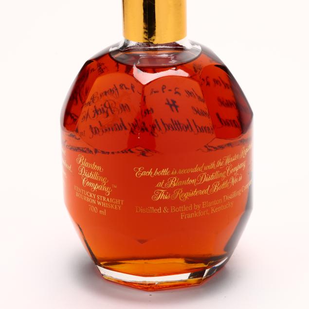 NV, Blanton's Gold Edition Single Barrel Kentucky Straight Bourbon Whiskey, Distilled & Bottled by Blanton Distilling Company, Frankfort, Kentucky , 51.5%, dumped on 2-9-18 from barrel no. 1521 in warehouse H on rick no. 19, bottle no. 256, ts, wax sealed letter 'B' stopper decanter, slightly cracked wax seal (1 700 ml)