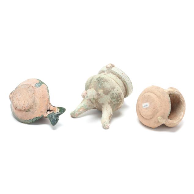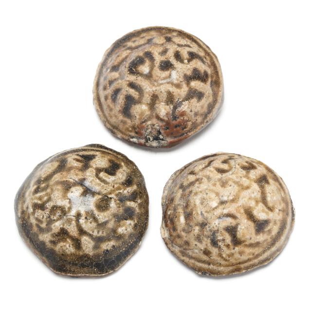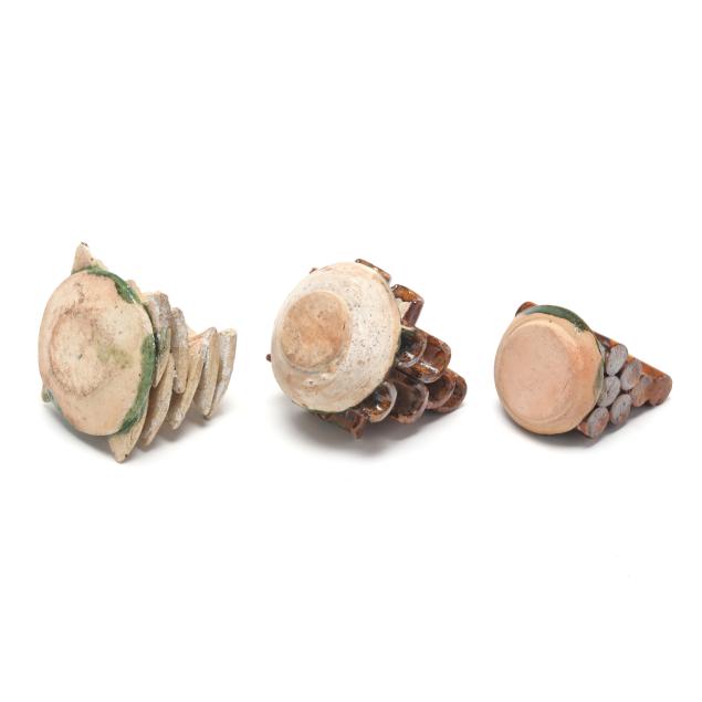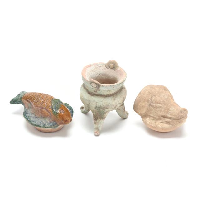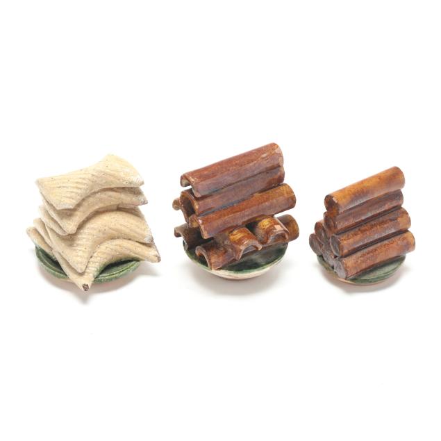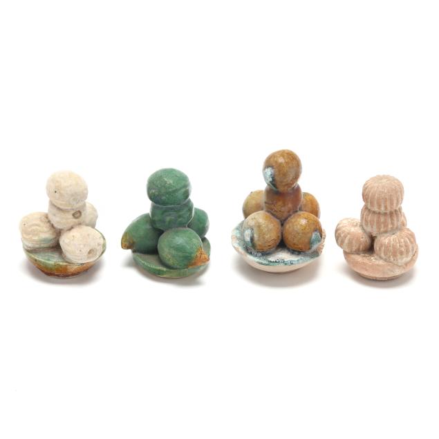 Ming dynasty period or style, includes plates of food, sweets, fruits, and imitations of disk-shaped gold ingots money, all created from pottery and glazed to include in tombs to provide for the afterlife.
