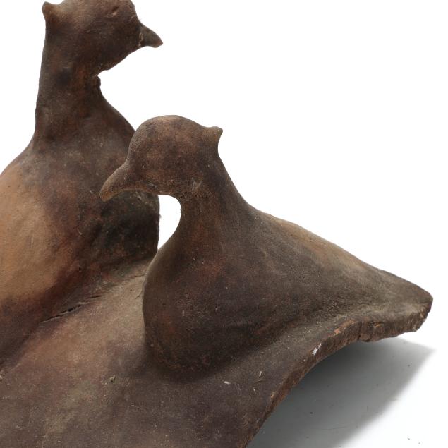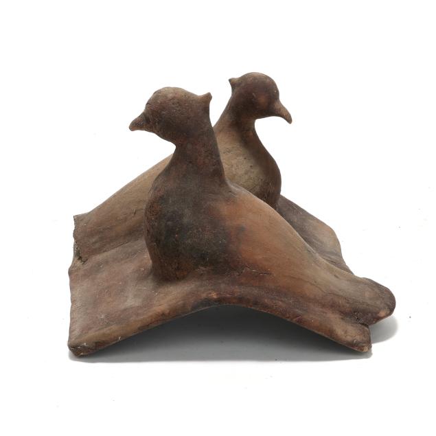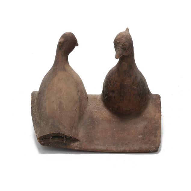 Terracotta Roof Tile with Two Resting Birds