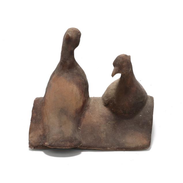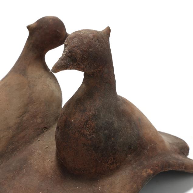 Early 20th century, molded earthenware, the birds facing in opposite directions, making for a pleasing composition.