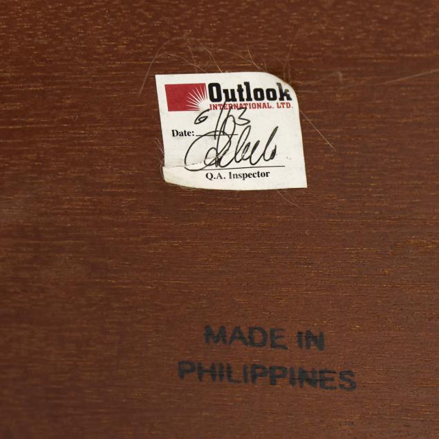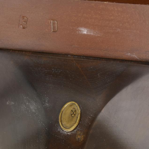 Late 20th century, mahogany, mahogany veneer, rectangular top with banded edge, two leaves, shaped straight legs, interior of one leg with oval brass "X" label.
