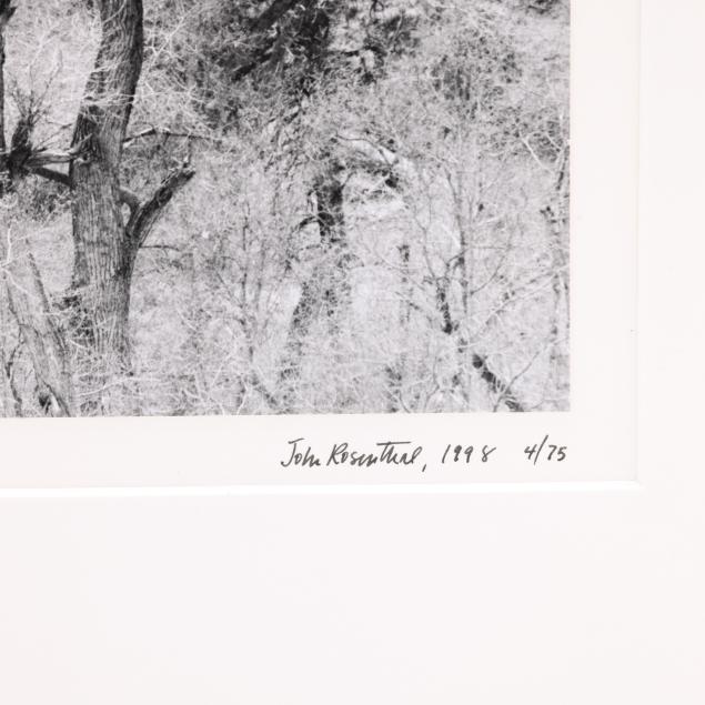 John Rosenthal is a leading North Carolina photographer. His work has been exhibited in a number of significant institutions and galleries, including the North Carolina Museum of Art; Nasher Museum of Art; Greenhill Center for North Carolina Art; University of North Carolina at Chapel Hill; Southeastern Center for Contemporary Art; Somerhill Gallery; Frank Gallery; and others. In addition to photography, Rosenthal has published many books on photography. Most recently, he completed a memoir titled