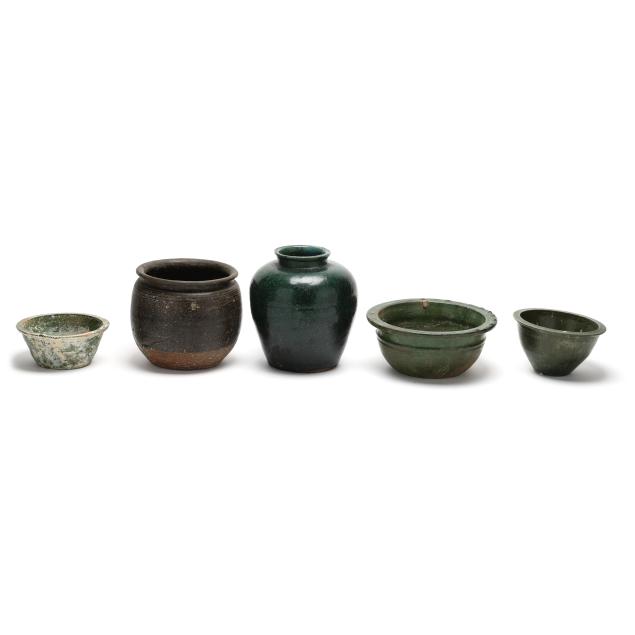 Han dynasty and Song dynasty period or style vessels, includes three bowls and two jars.