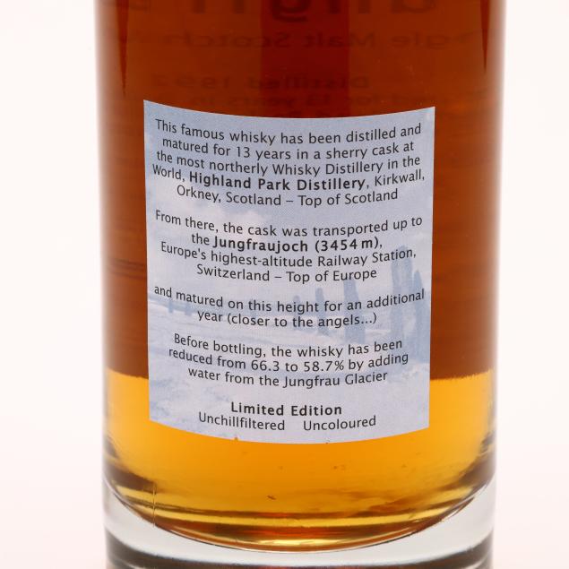 Vintage 1992, Jungfrau 13 Year Old Single Malt Scotch Whisky, Highland Park Distillery, 58.7%, cask no. 20359, bottle no. 50/288, ls, sealed (1 750 ml)