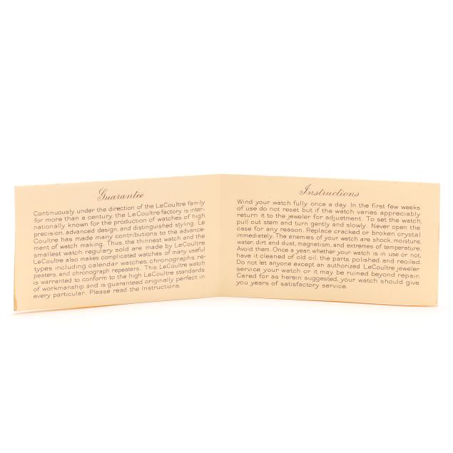 Accompanied by LeCoultre Guarantee and Instructions paperwork.
