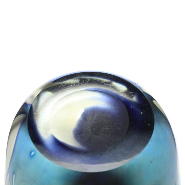 Two Lotton Iridescent Foliate Art Glass Vases