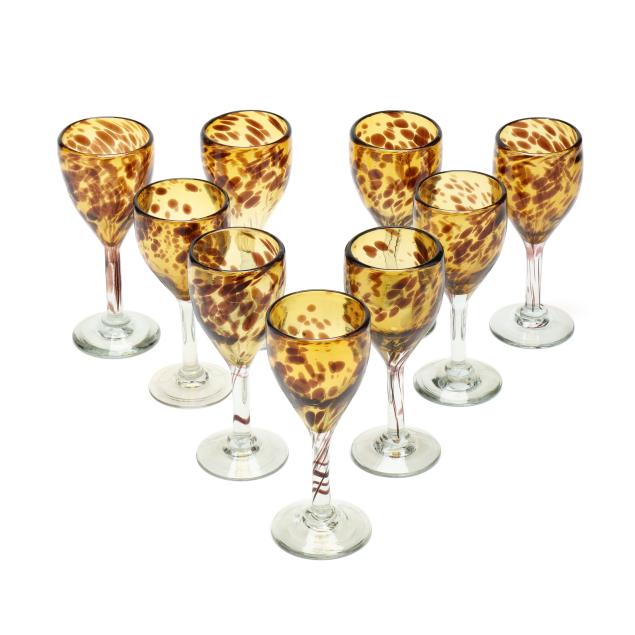 Set of Nine Blown Glass "Tortoiseshell" Goblets