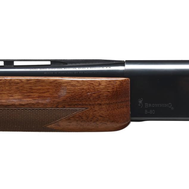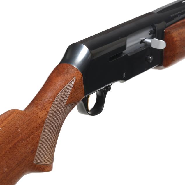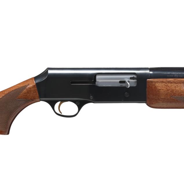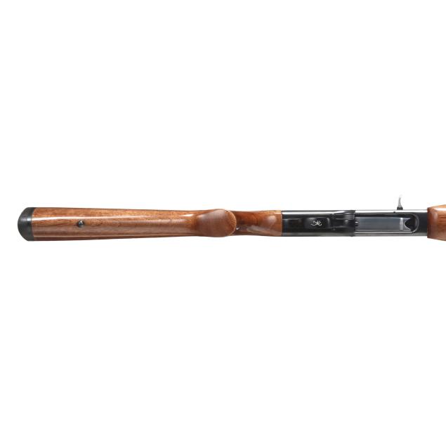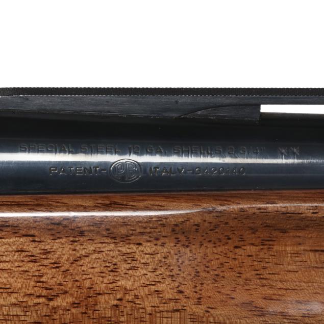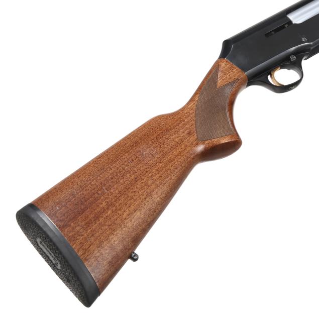 Serial number 411PZ08916 present along left side of blued semi-automatic receiver, text of MADE IN PORTUGAL BY FN HERSTAL and SPECIAL STEEL 12GA SHELLS 2 3/4" present on 27 1/2 in. high polished blued steel vent rib barrel with single bead, manual safety, gold washed trigger, sling swivel studs, high gloss checkered pistol grip walnut buttstock with checkered high gloss walnut forend, factory recoil pad.