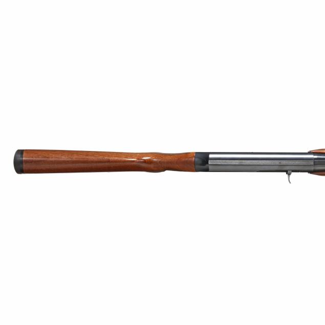 Overall very good estate condition, bore is bright and shiny, high polish blue surfaces remain very strong and black with slight field marks scattered throughout, damage on right side of receiver from metal punch near pin to remove trigger assembly, high gloss stock finish shows light scratching with a fingerprint sized depression in wood and finish on left and right sides of buttstock behind the wrist checkering panel, checkering dry and very crisp, recoil pad in good condition yet with little compression.