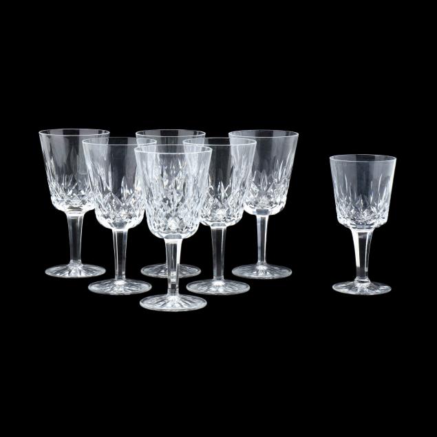 Including (6) water goblets (7 in.); (1) wine goblet (6 in.); and (7) stemmed iced teas (6.5 in.), signed.