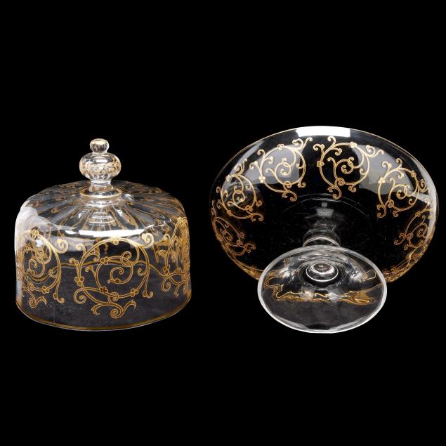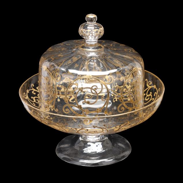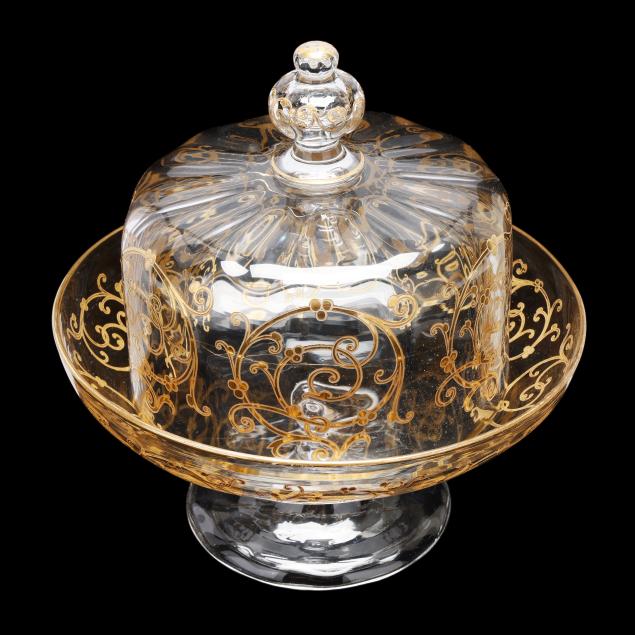 Venetian Style Engraved and Gilt Glass Server with Cloche