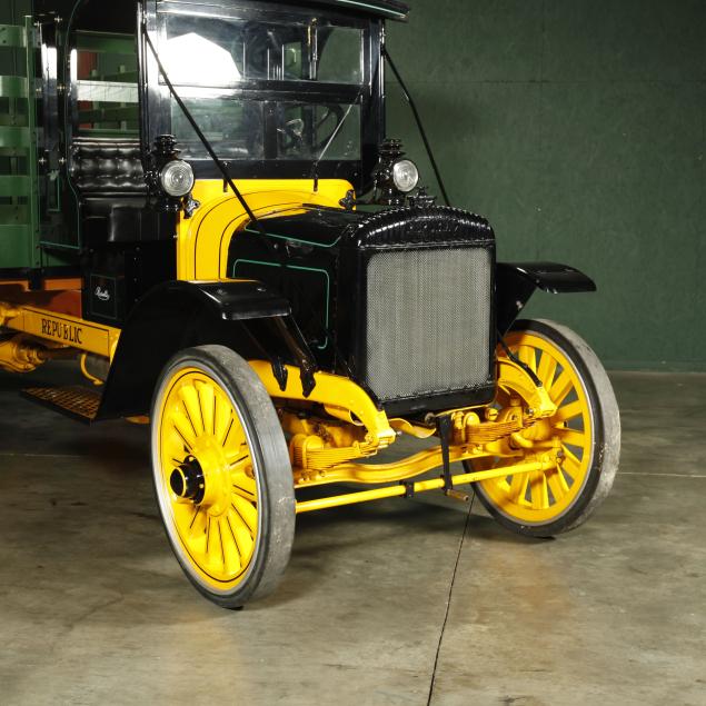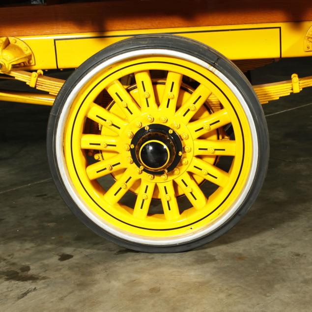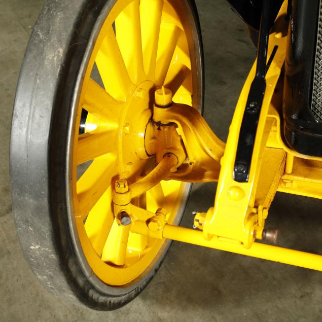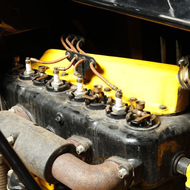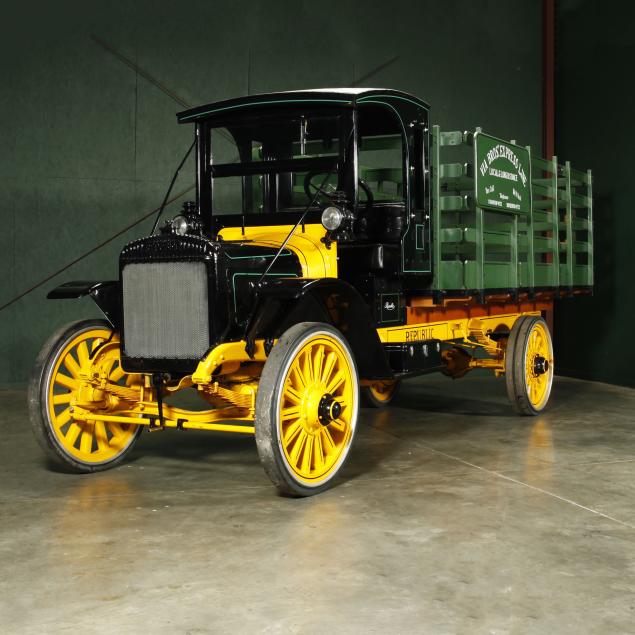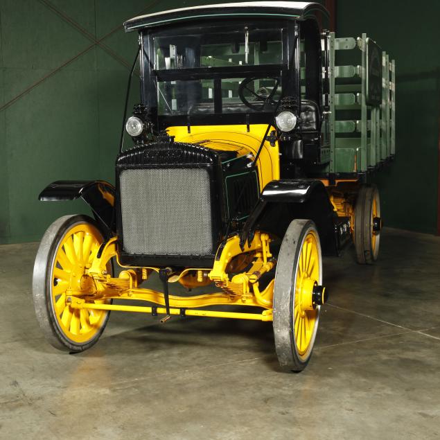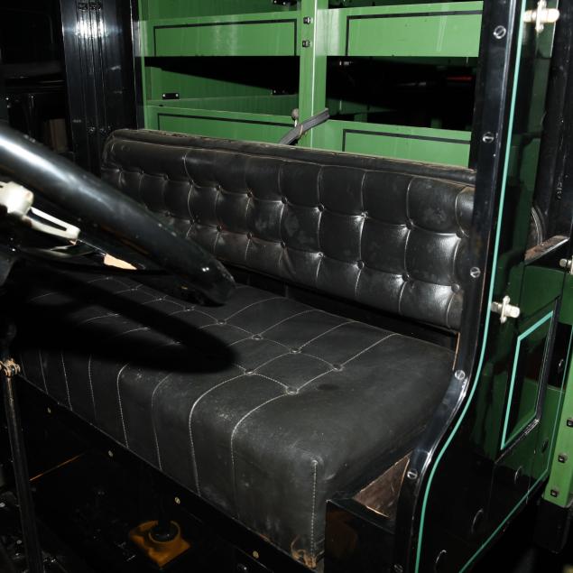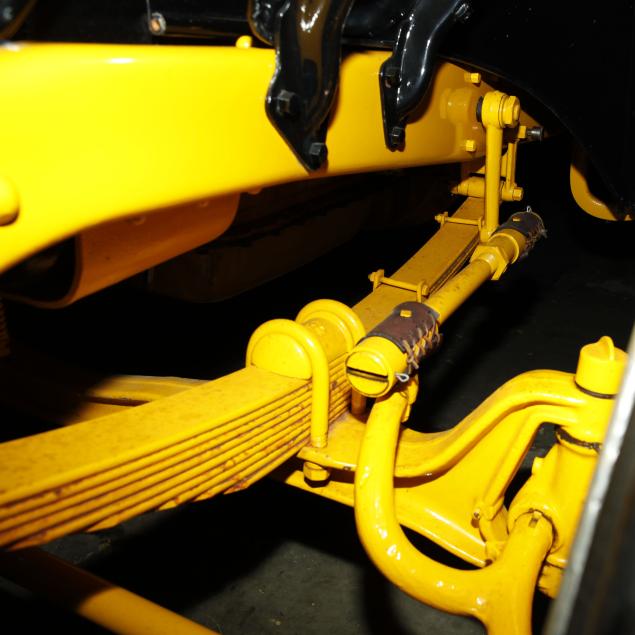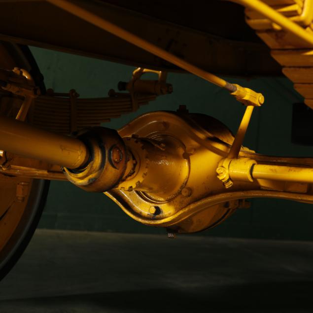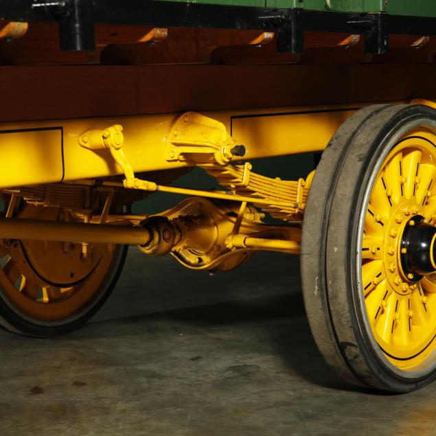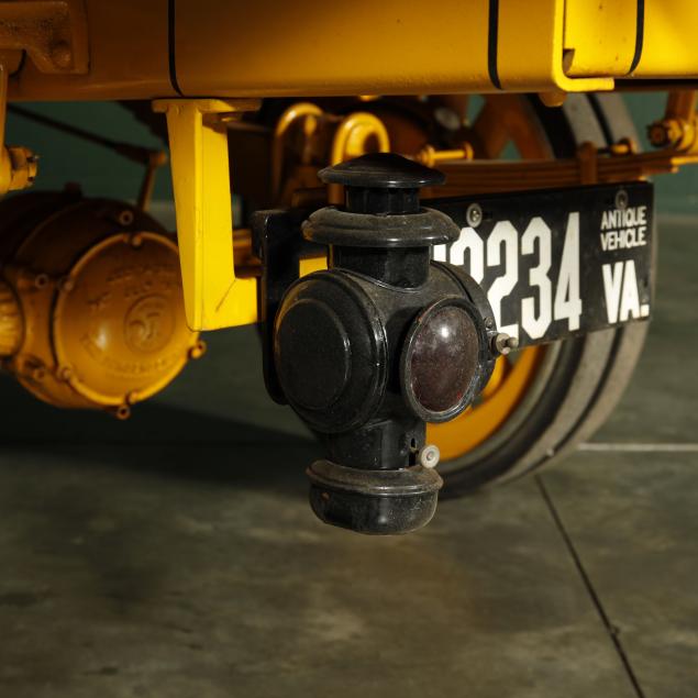 With a 2.5 ton chassis, a 4-cylinder Continental engine, four speed manual transmission, and is equipped with hard/solid rubber tires. It requires manual crank in front to start.