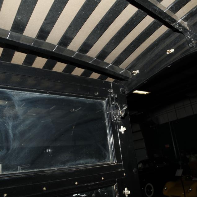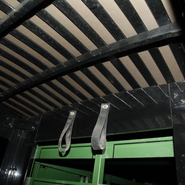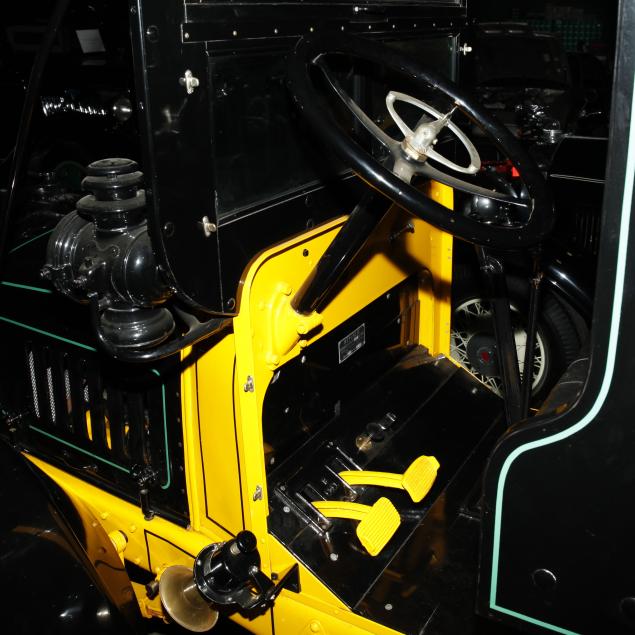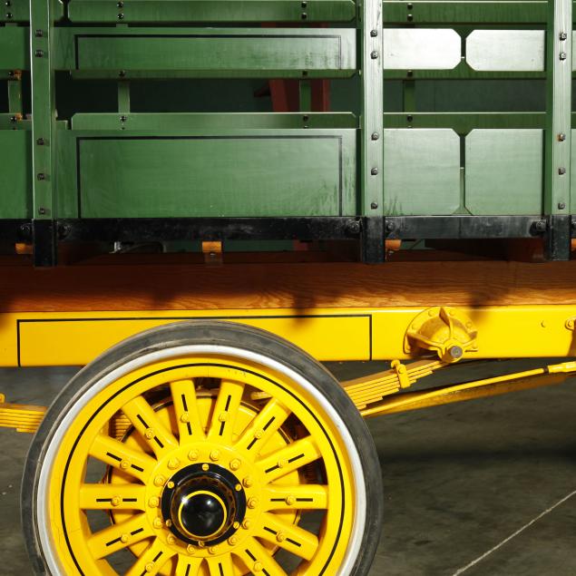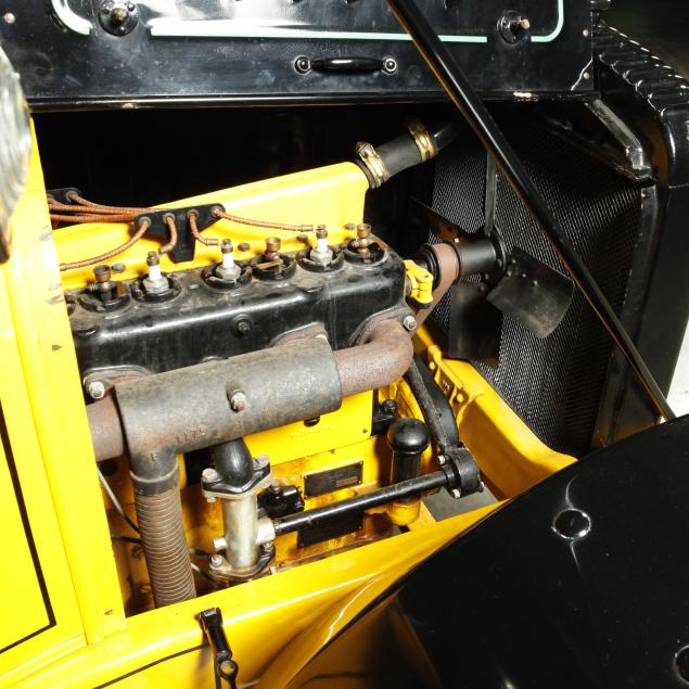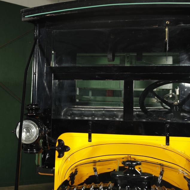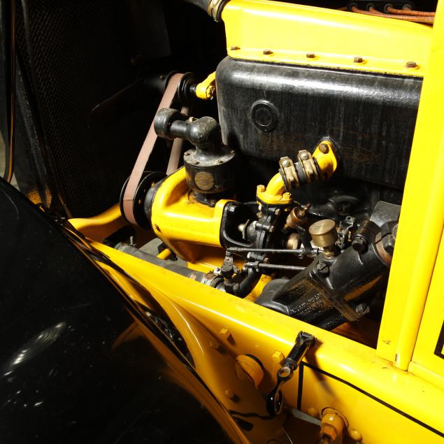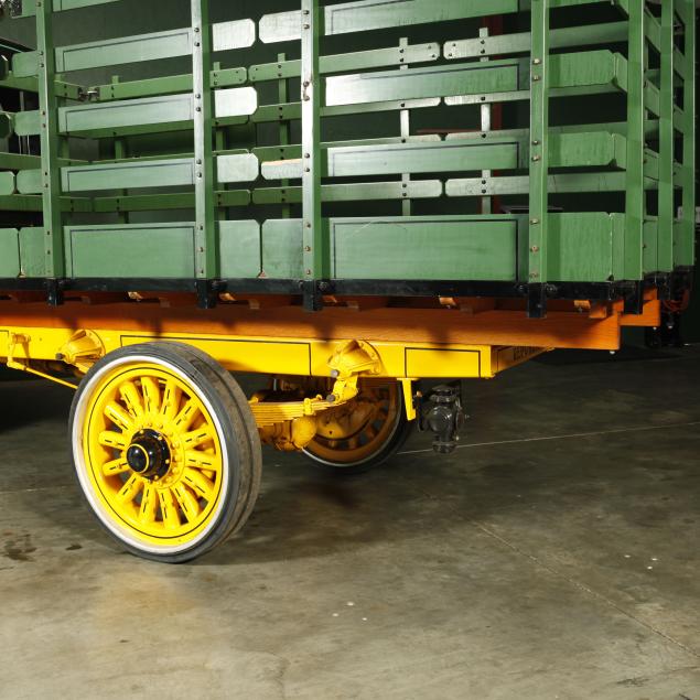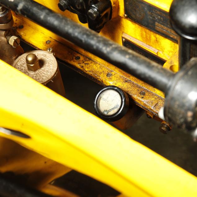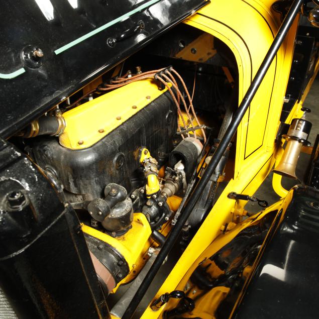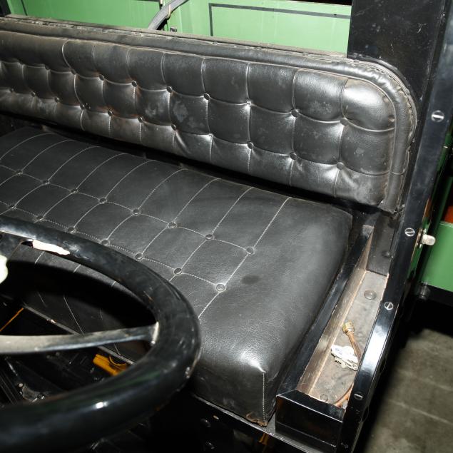 With a 2.5 ton chassis, a 4-cylinder Continental engine, four speed manual transmission, and is equipped with hard/solid rubber tires. It requires manual crank in front to start.