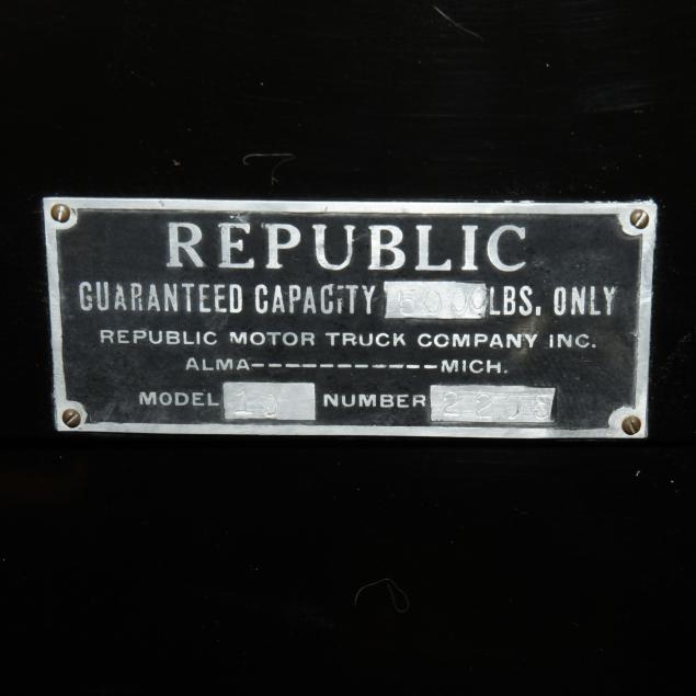 The Republic Motor Truck Company was a manufacturer of commercial trucks from 1913 - 1929, in Alma, Michigan. The company was originally founded by Frank Ruggles as the Alma Manufacturing Company which was producing trucks in early 1913 for the Maxwell Motor Company under its Hercules vehicle name. During later part of 1913 Ruggles decided to begin producing his own vehicles under the Alma Motor Company label, then soon it became the Republic Motor Truck Company. The Hercules vehicle also had its name changed to the Republic. By 1918, it was recognized as the largest exclusive truck manufacturer in the world, and the maker of one out of every nine trucks on the roads in the United States.