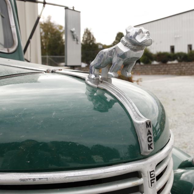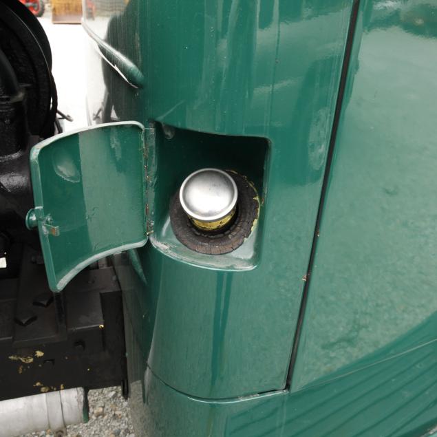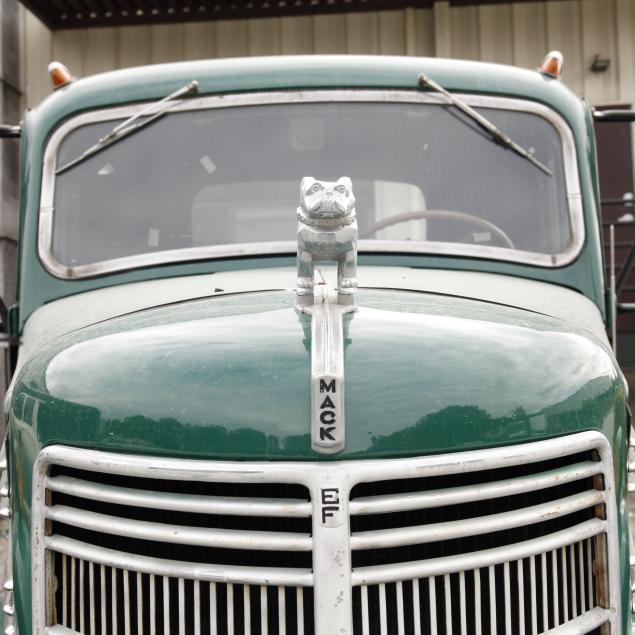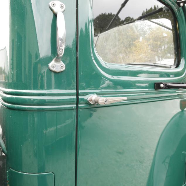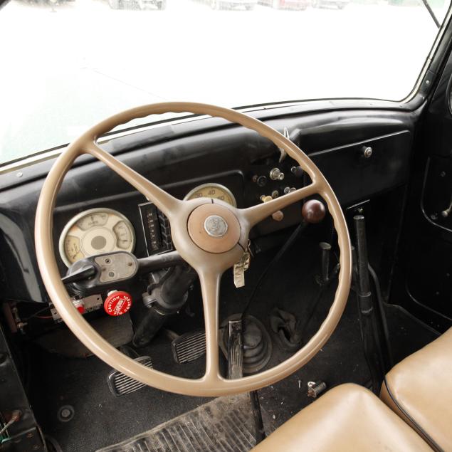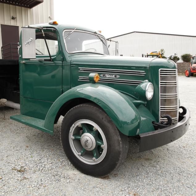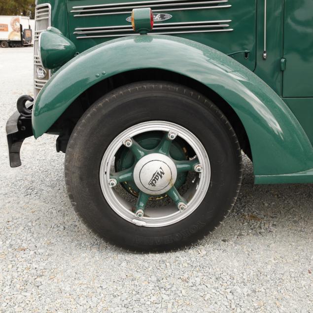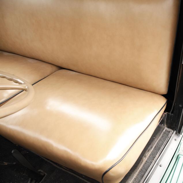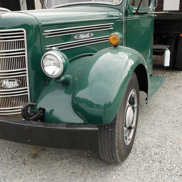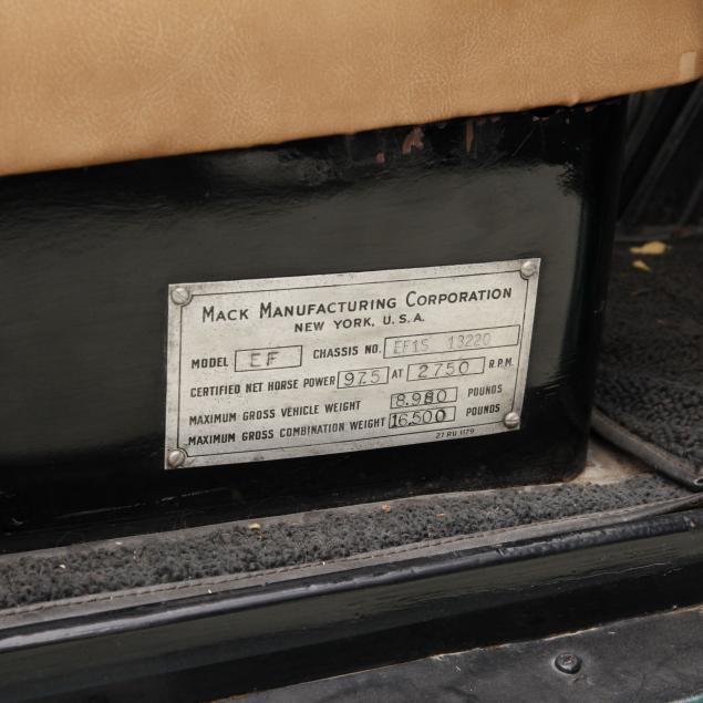Exterior in green paint, and beige vinyl interior. The original Mack gauges appear to operate correctly, and an original AM/FM radio is installed in the center of the gauges.