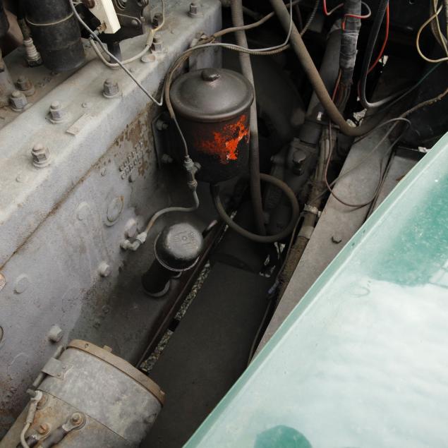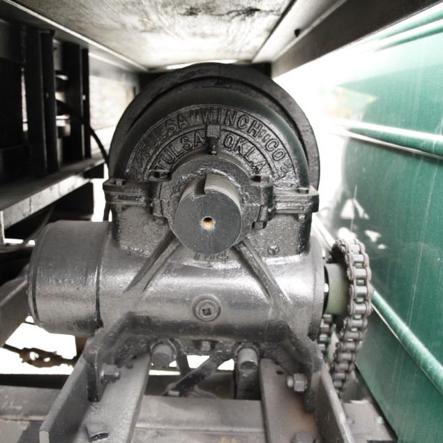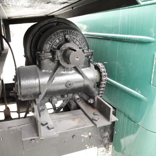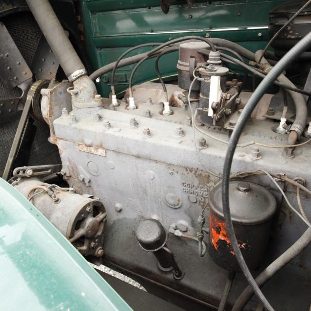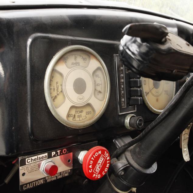 Believed to be a EN 209 Continental flathead six-cylinder engine producing 97.5 horsepower. Equipped with a Chelsea PTO, Tulsa Winch Company winch, and tilting bed.