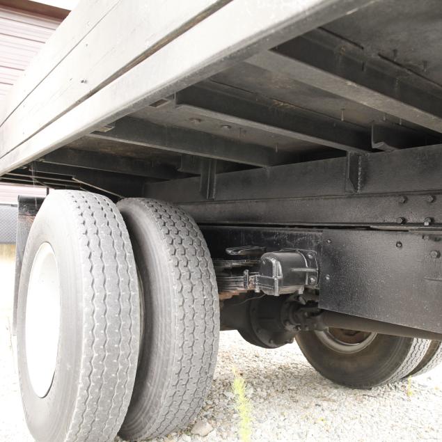 In very good condition, stored indoors; the fuel tank was cleaned, and has holes, will need to be repaired/replaced; temporary fuel jug in use to move the truck; PTO not tested; dump bed not tested; runs and drives as expected; rear interior panel of cab is loose; no other apparent concerns.