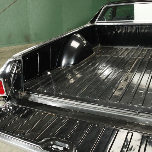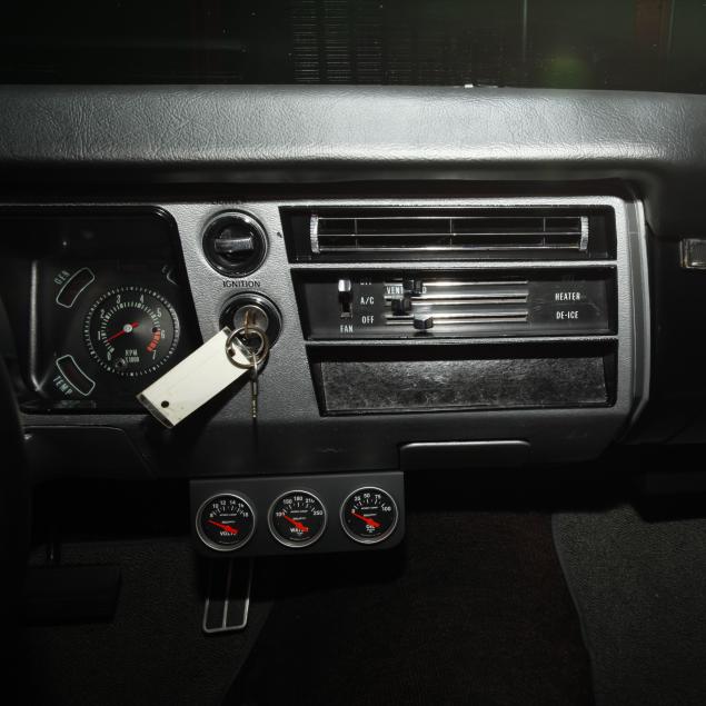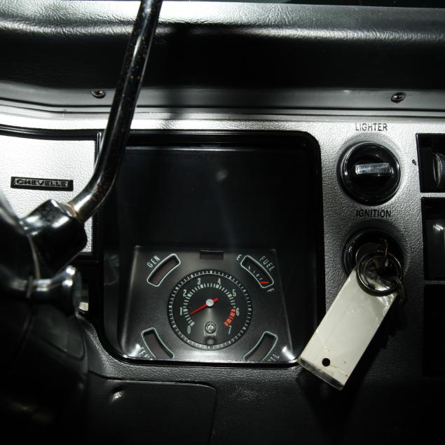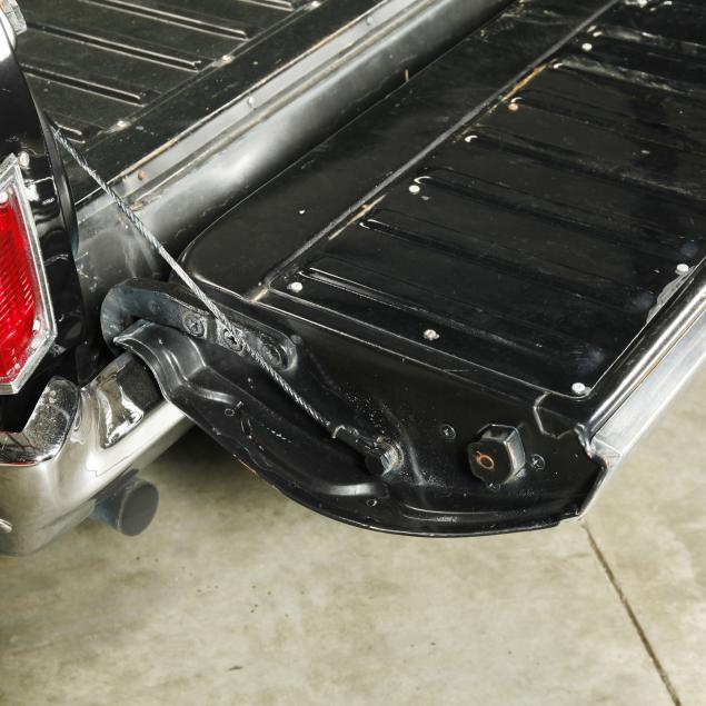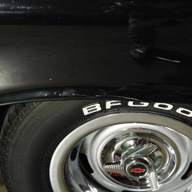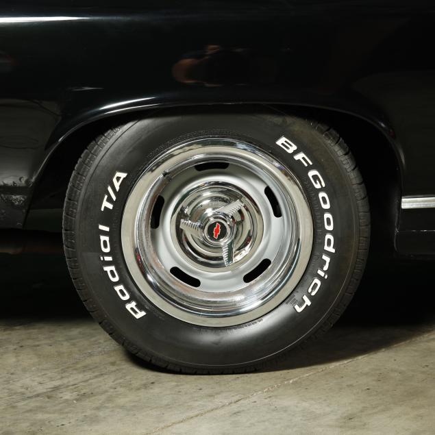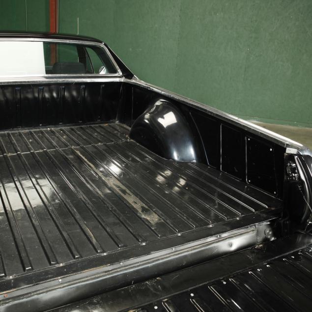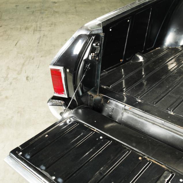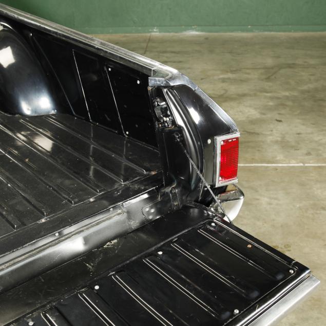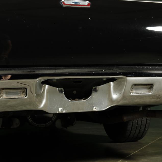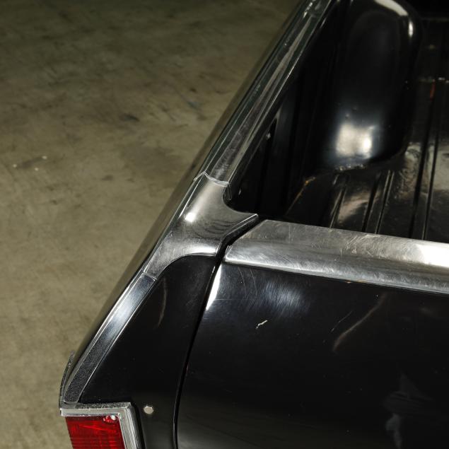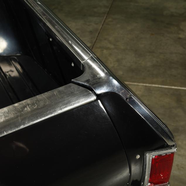 Originally Tuxedo Black, with a repaint that shows well, and the interior in black also. In 2009, the truck received a minor refresh to include installation of a Vintage air conditioning system, Grant three-spoke 14" steering wheel, new door panels were installed, as well as voltage, water temperature and oil pressure gauges. The original 120 mph speedometer and the tachometer inset of the warning lights and fuel gauge were retained. It appears that some of the interior pieces are original, and some restorations has been performed to headliner and such. The original bench seat was replaced with six-way power drivers seat with manual passenger seat and a console added. The 15" Chevrolet Rallye Style 55 wheels with BFGoodrich Radials in 235/60 and 255/60 give the truck an aggressive stance. The installation of the A/C system with an original 4 lever control required the removal of the radio in the factory location, and a blank panel was added. The door rubbers and window seals, and windshield have been replaced at some point. Chevrolet factory service manual for Caprice, Impala, Monte Carlo, and El Camino and Chiltons manual present.