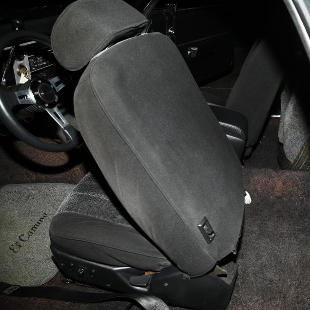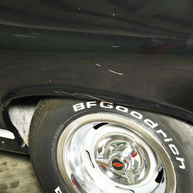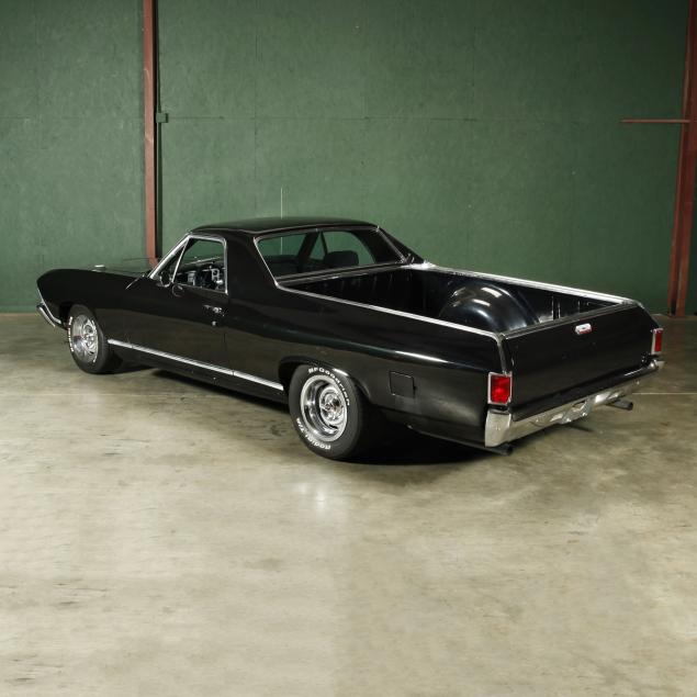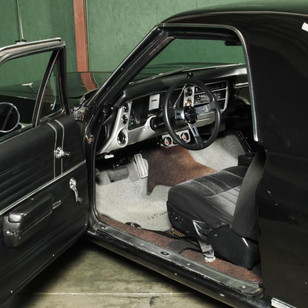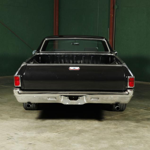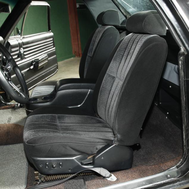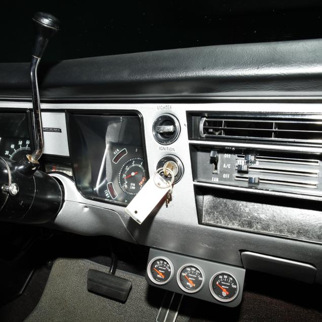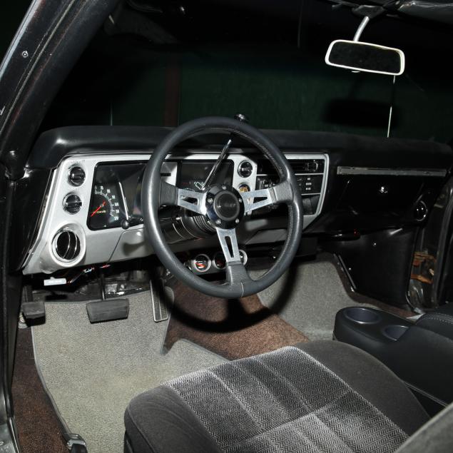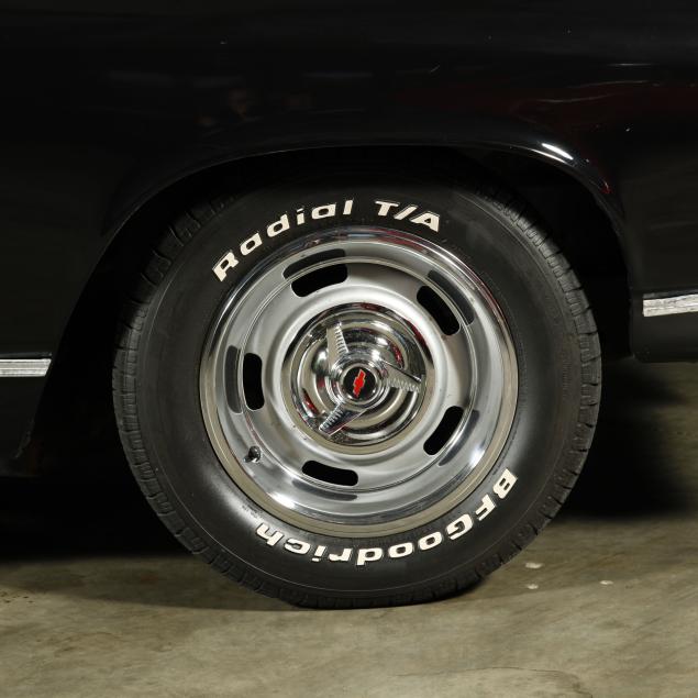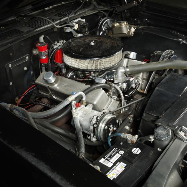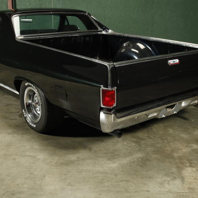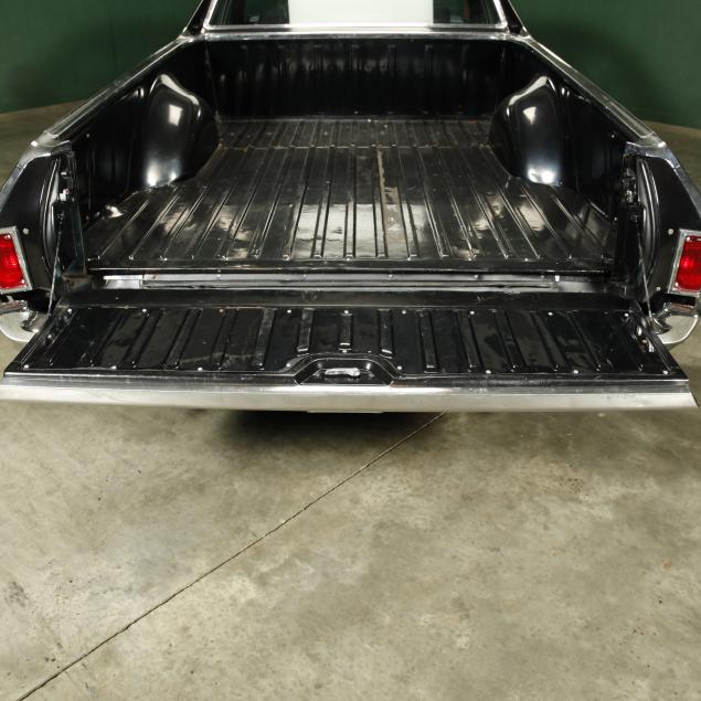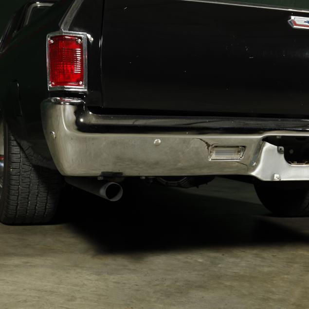 Originally Tuxedo Black, with a repaint that shows well, and the interior in black also. In 2009, the truck received a minor refresh to include installation of a Vintage air conditioning system, Grant three-spoke 14" steering wheel, new door panels were installed, as well as voltage, water temperature and oil pressure gauges. The original 120 mph speedometer and the tachometer inset of the warning lights and fuel gauge were retained. It appears that some of the interior pieces are original, and some restorations has been performed to headliner and such. The original bench seat was replaced with six-way power drivers seat with manual passenger seat and a console added. The 15" Chevrolet Rallye Style 55 wheels with BFGoodrich Radials in 235/60 and 255/60 give the truck an aggressive stance. The installation of the A/C system with an original 4 lever control required the removal of the radio in the factory location, and a blank panel was added. The door rubbers and window seals, and windshield have been replaced at some point. Chevrolet factory service manual for Caprice, Impala, Monte Carlo, and El Camino and Chiltons manual present.