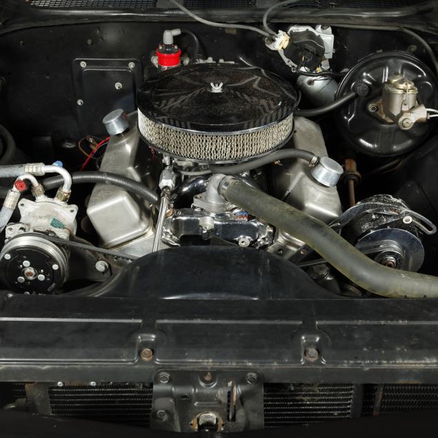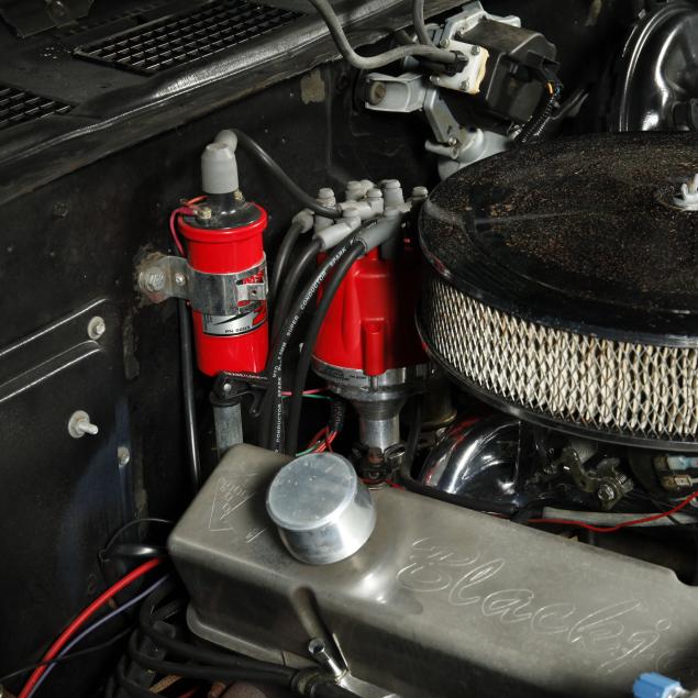 With the original 327 cubic inch V8 stroked to 383 cubic inches, and the 700-R4 transmission was upgraded to a stronger 200-R4 automatic transmission with overdrive in 2016. An engine rebuild in 2006 included aluminum heads, Edelbrock Air Gap Intake, and Edelbrock AVS 800cfm carburetor to produce 400 horsepower. A 12 bolt Torsen posi-traction rearend with 3:73 gears was added. A+A Engine Dynamics in New Jersey performed the engine rebuild and install. Exhaust Headers, Flowmaster exhaust, as well as an MSD Ignition system and wiring from Painless Wiring were added. An Edlebrock four link rear end system is in place with air adjustable shocks. This truck has an aggressive tone and is very fast. It retains disc brakes in the front and drums in the rear.