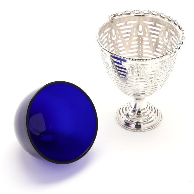 The basket in good estate condition, some fleabites to the rim and base of the cobalt glass.