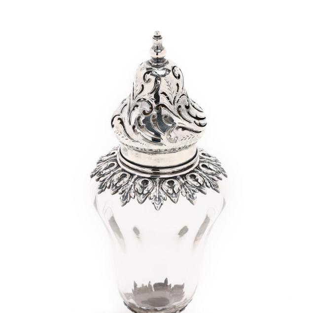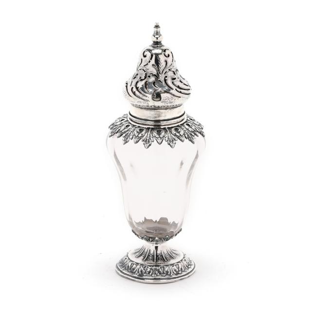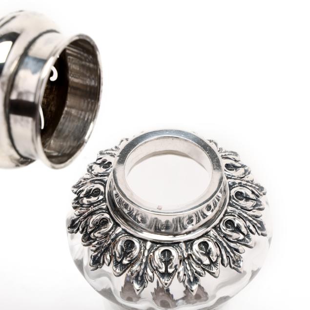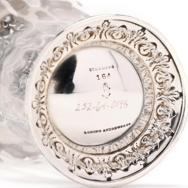 Circa 1900, pattern number 164, retailed by Loring Andrews & Co., Cincinnati, featuring a reticulated lid, and uniform foliate design to the shoulder and foot, not monogrammed.