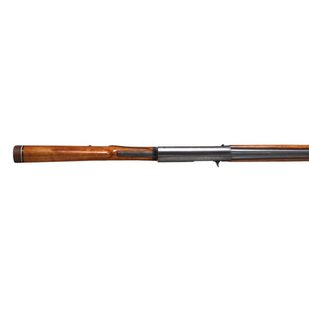 Overall good estate condition, blued surfaces are dark and display only light field marks, bore is bright and shiny, stock and forend finishes are healthy, scattered slight imperfections in finish surfaces, checkering is dry and crisp, recoil pad slightly deformed but remains pliable.